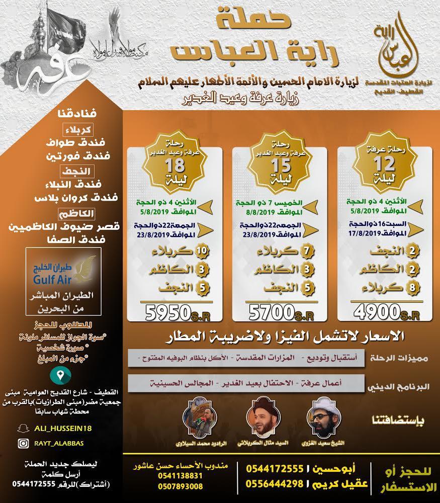 حملة راية العباس تسير رحلاتها لزيارة الإمام الحسين والأئمة الأطهار عليهم السلام في غرفة وعيد الغدير