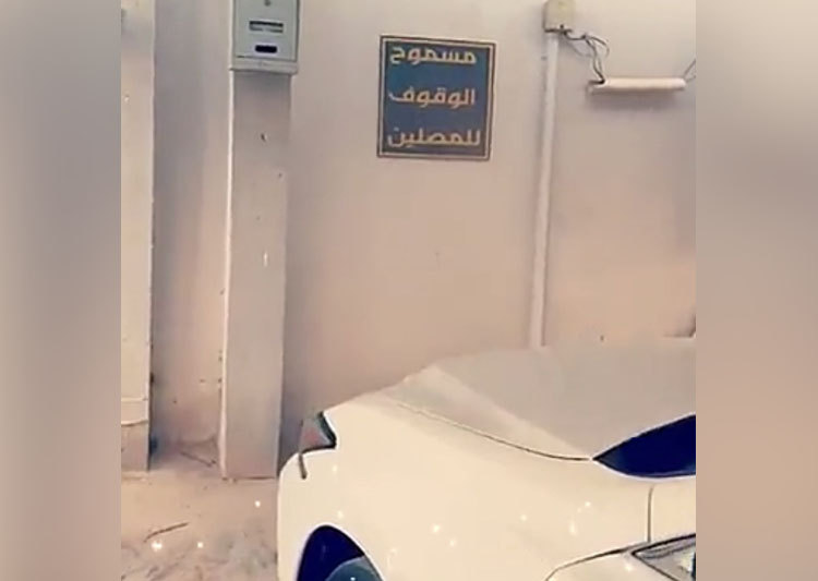 وعلّق المواطن الأحسائي لوحة على جدار بيته الخارجي كتب عليها ”مسموح الوقوف للمصلين“، كبادرة تعاون وتحصيلا للثواب.