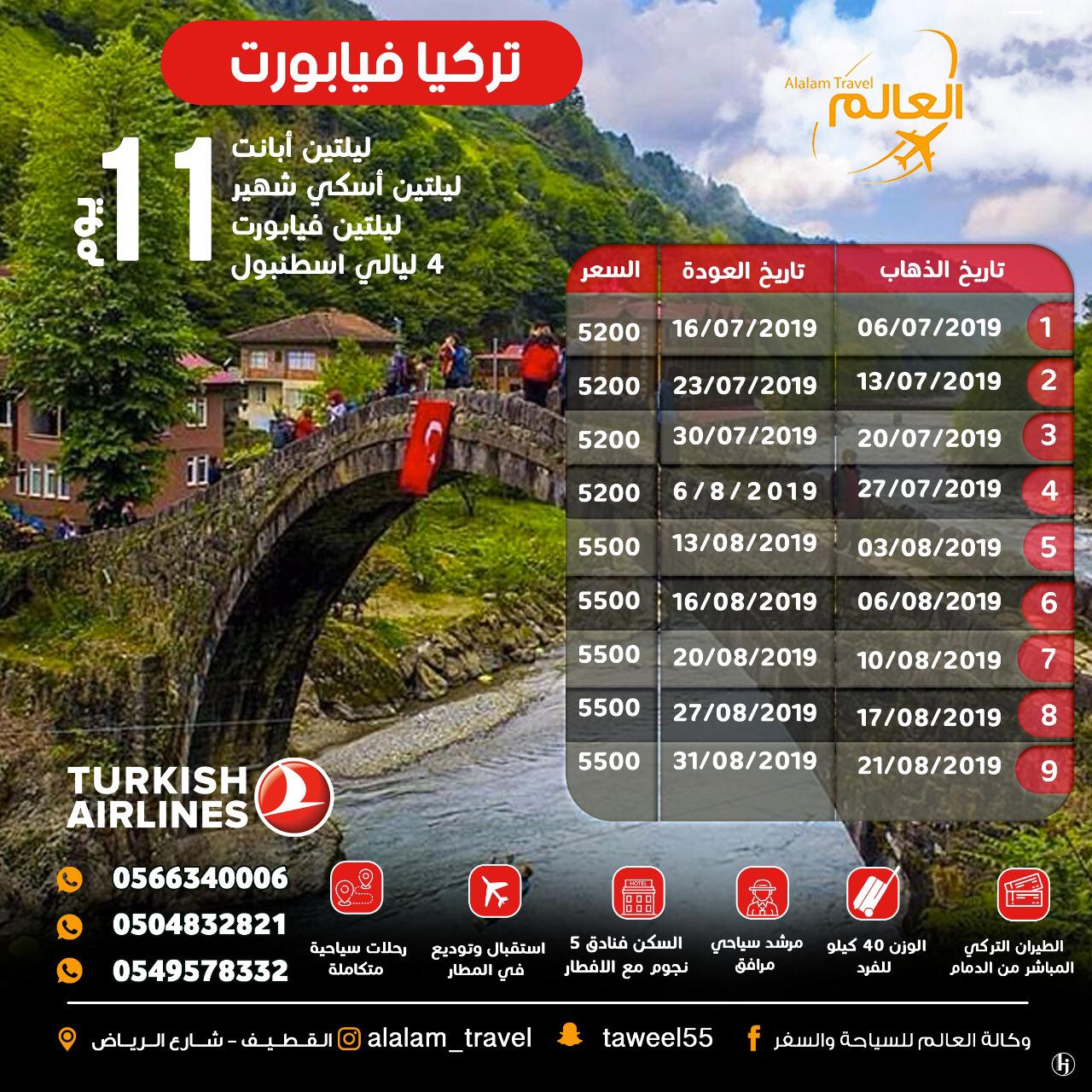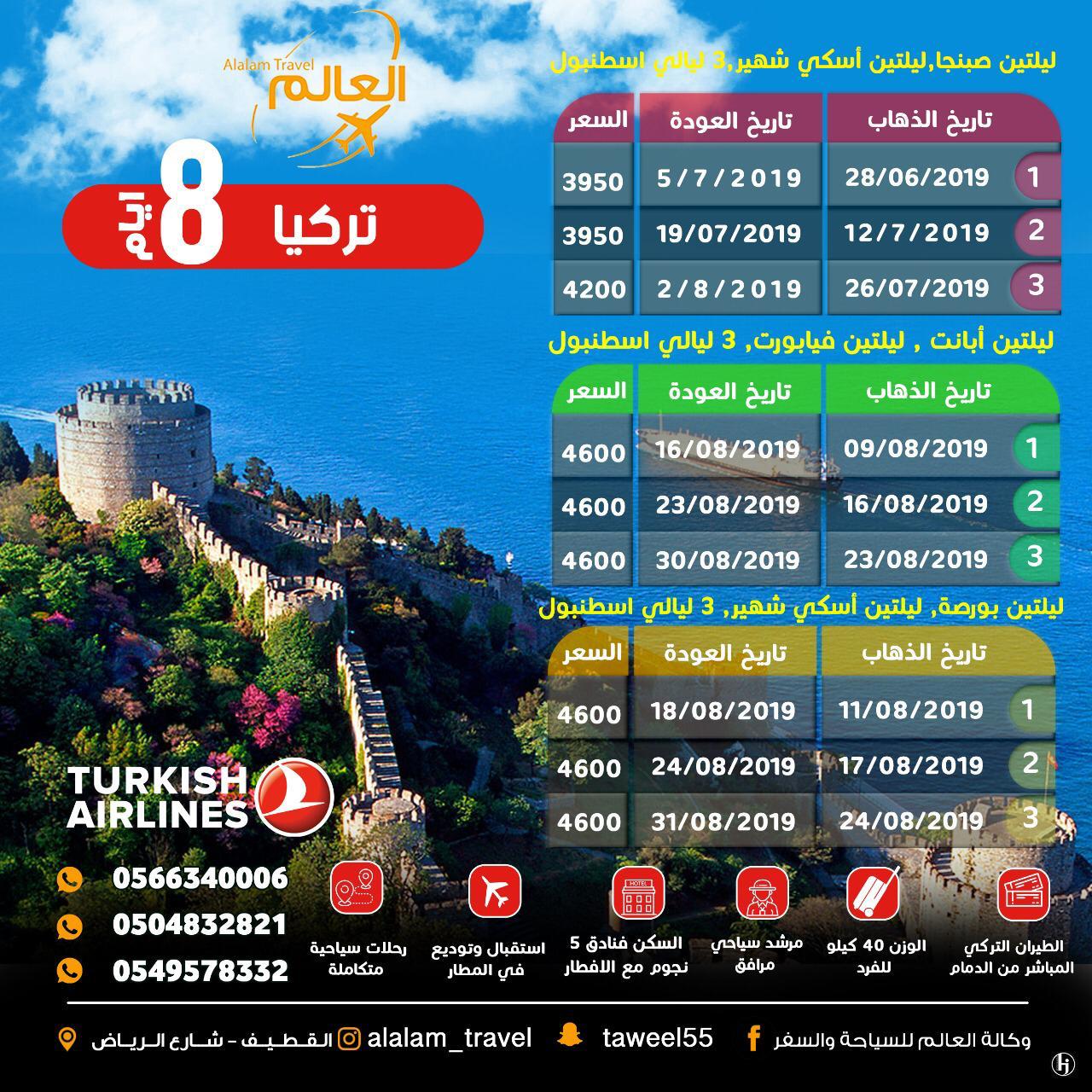 ✈ جميع رحلات تركيا وزن 40 كيلو على الطيران التركي المباشر من الدمام👇🏻