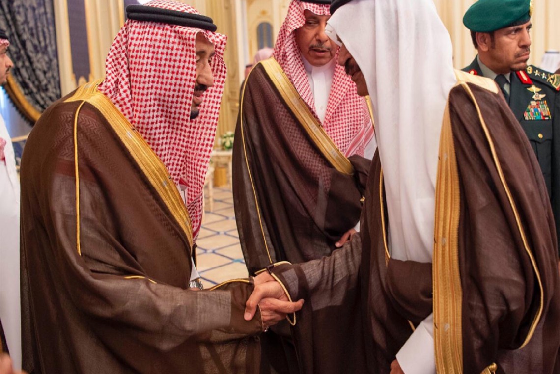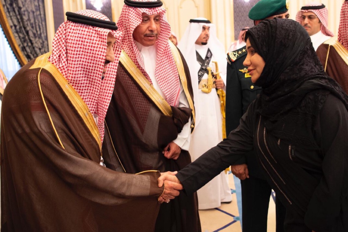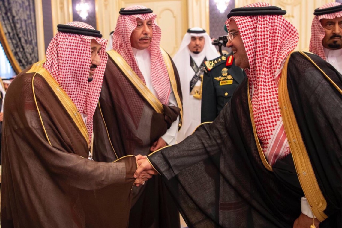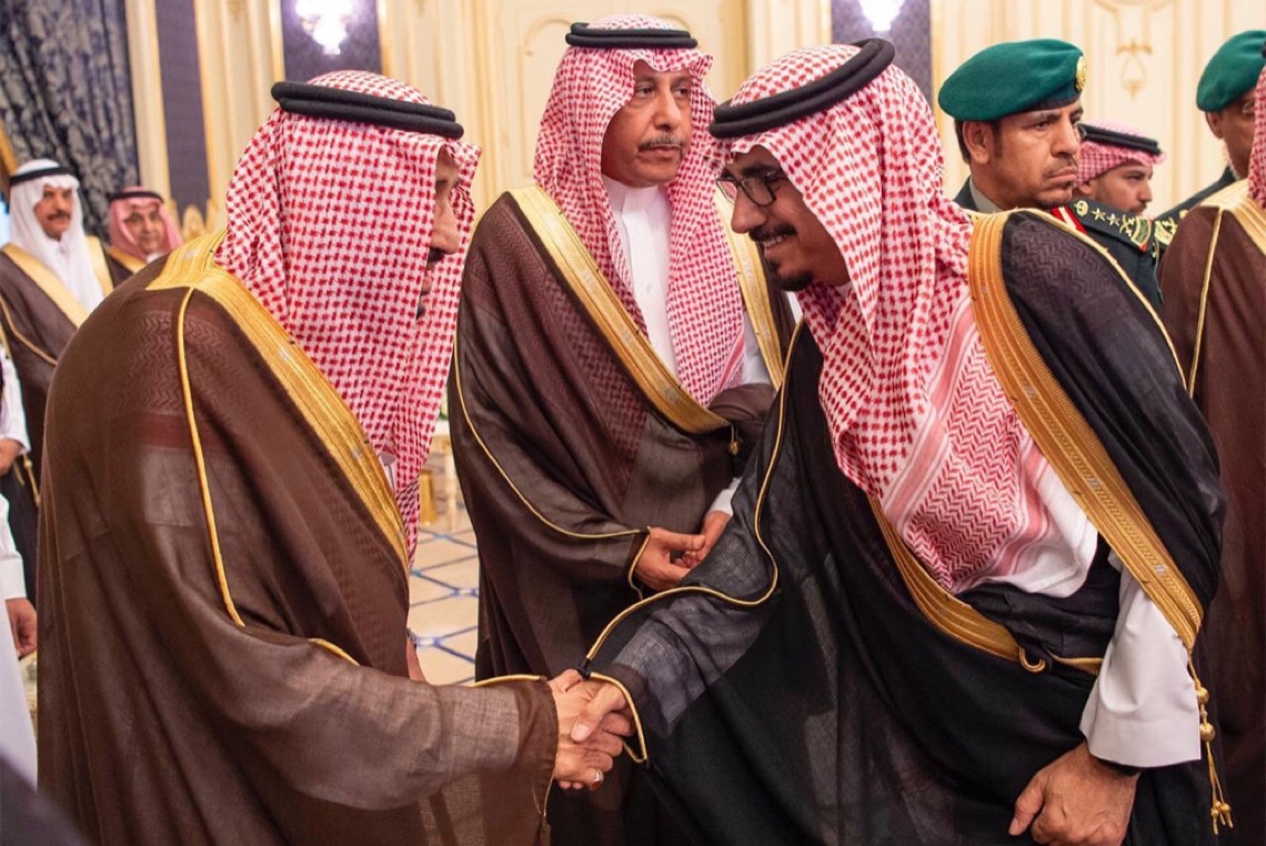 في بداية الاستقبال، تشرّف الجميع بالسلام على خادم الحرمين الشريفين.