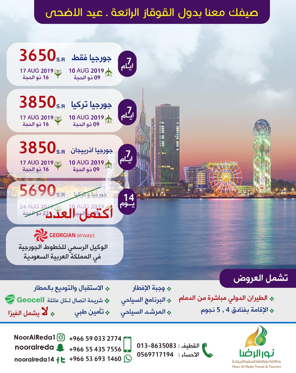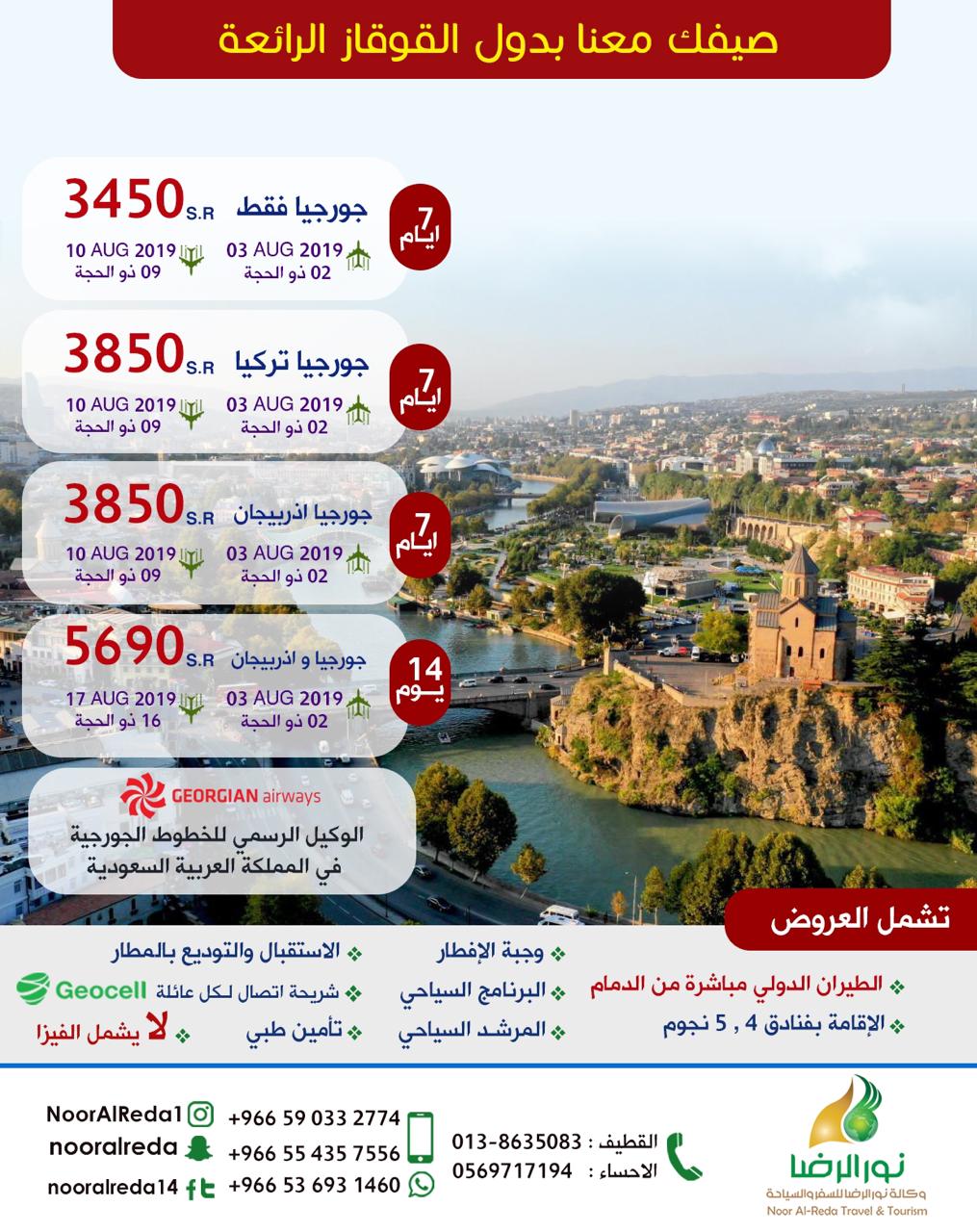 ✨ مباشرة من الدمام.. صيفك مع نور الرضا الى دول القوقاز الرائعة ب 3450 شامل ✨