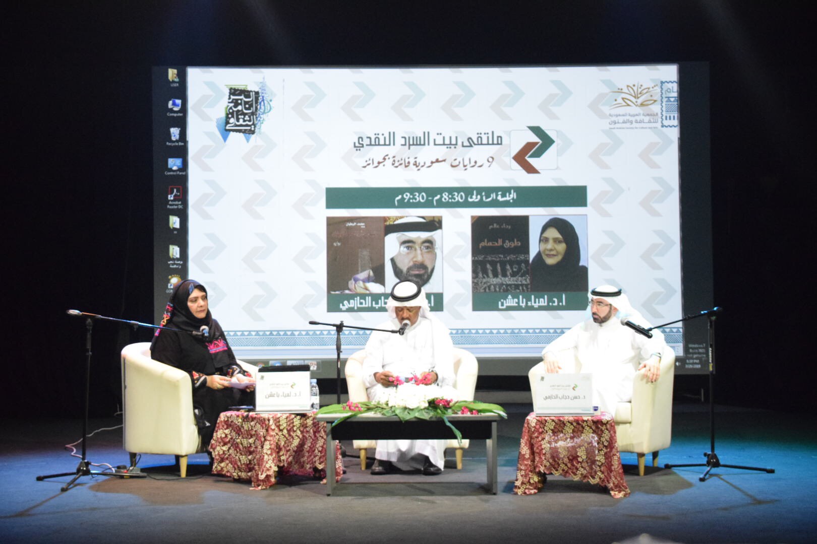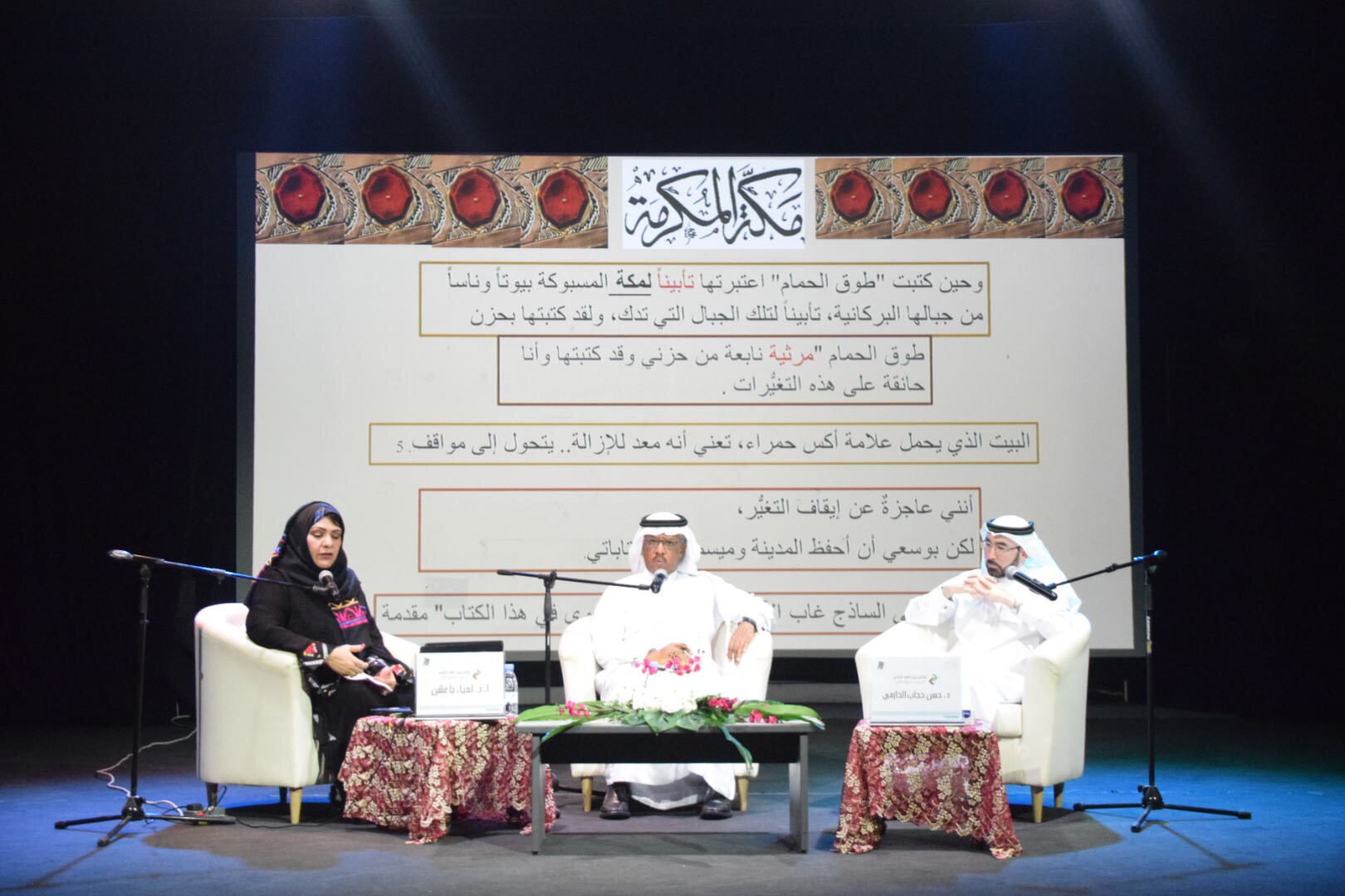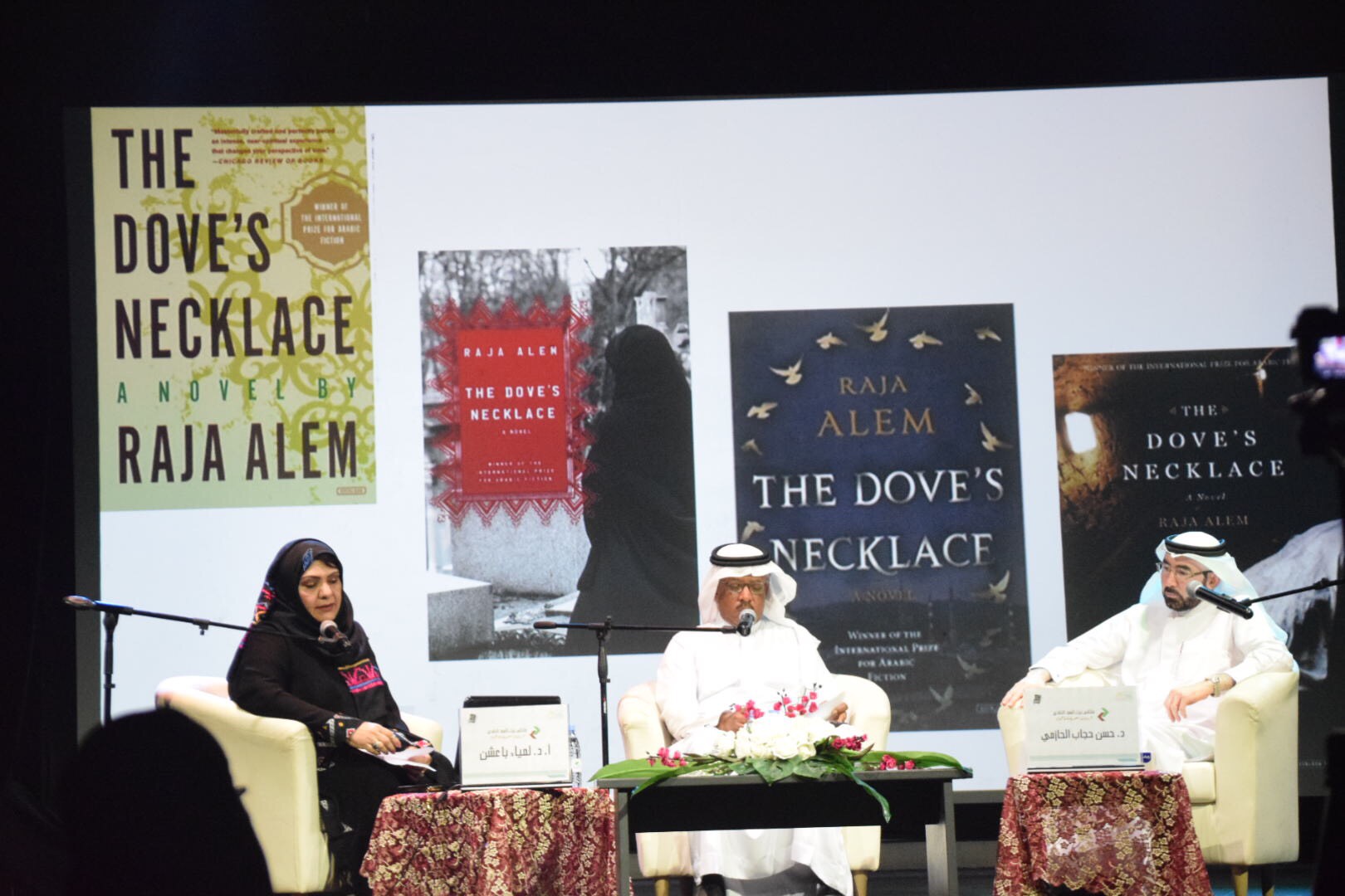 وقدمت الدكتورة لمياء باعشن قراءة بعنوان ”طوق التماسك السردي في «رواية طوق الحمام»“ حيث عملت على تتبع امتدادات وتفرعات الخط الجامع للنص في رواية طوق الحمام لرجاء عالم سرديا وفكريا وتشيكيليا. هذه الرواية الملحمية تقدم بانوراما واسعة ومتشعبة من الشخوص والأماكن والمرجعيات التاريخية والاسطورية والثقافية.