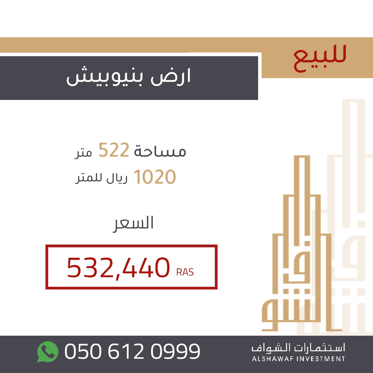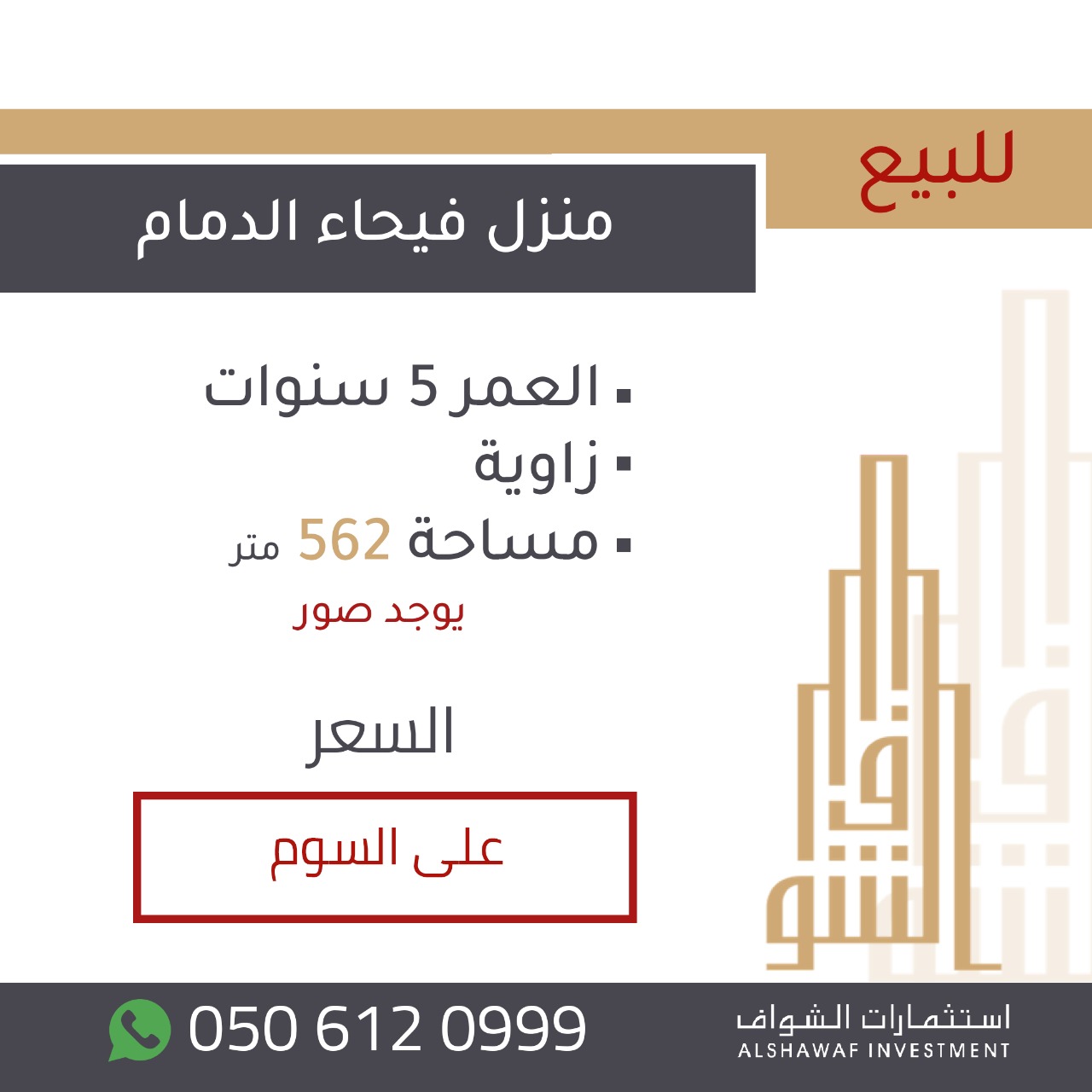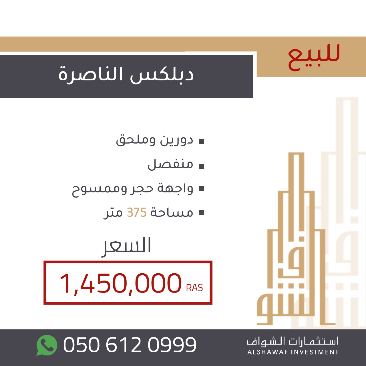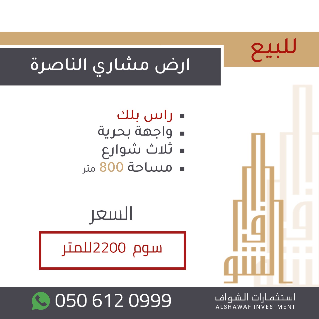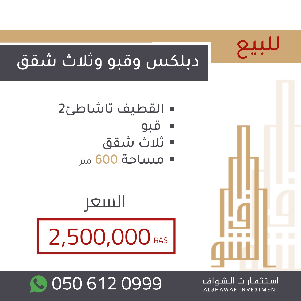 او الاتصال على 0506120999