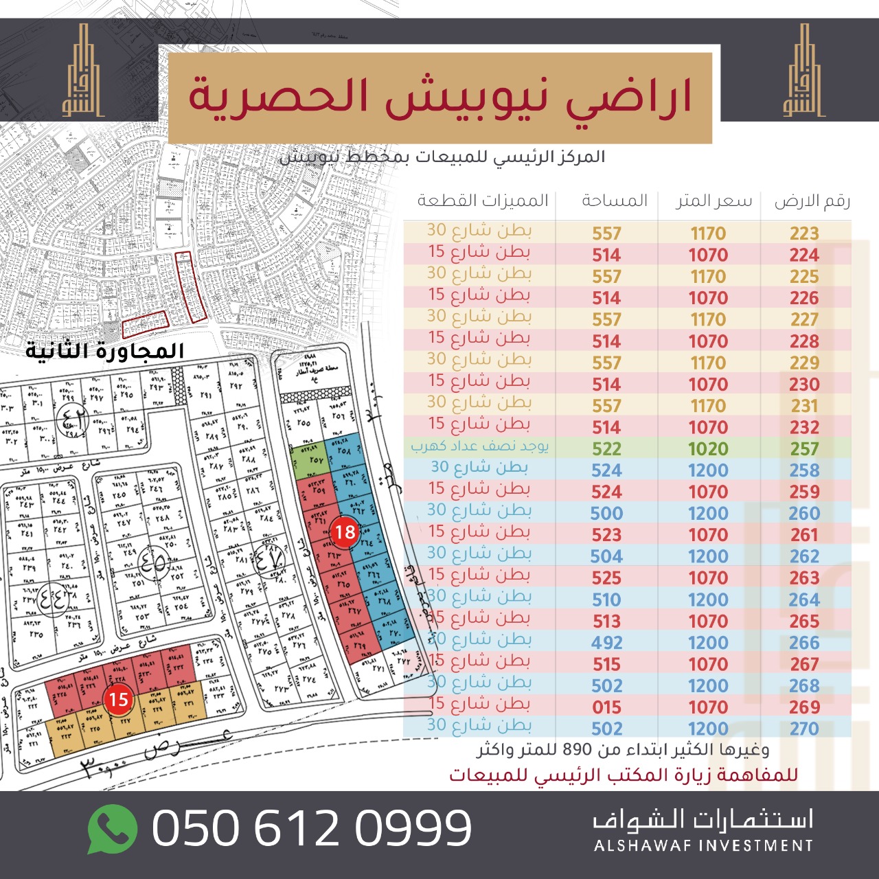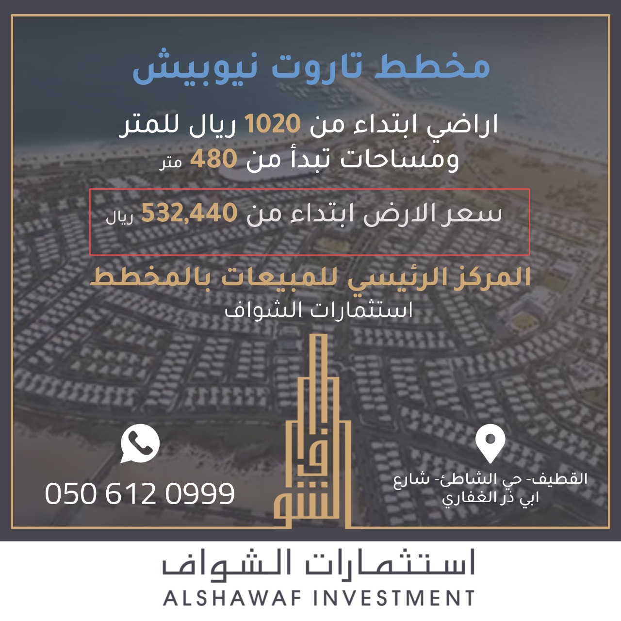 الشواف: اراضي تاروت نيوبيش ابتداء من 532 ألف ودبلكسات ابتداء من 500 ألف ريال