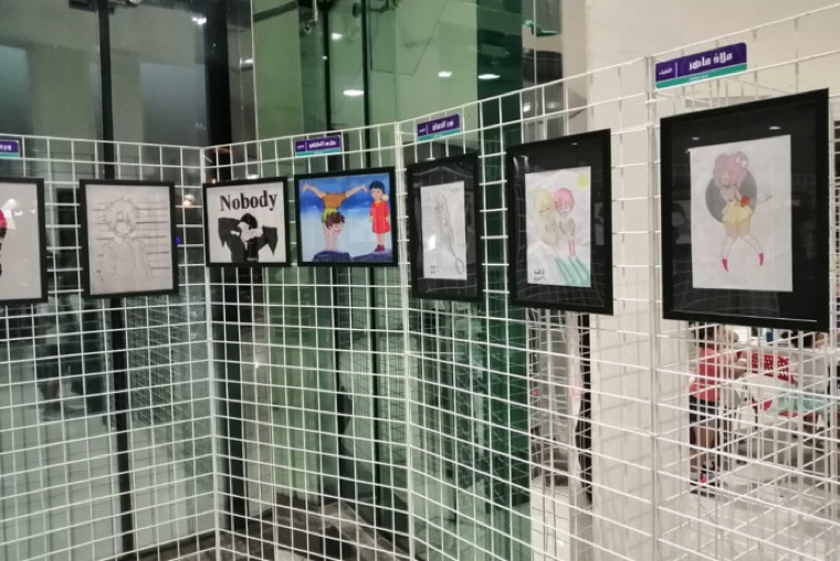 وتميزت الاعمال الموجودة في معرض ”كراتين“ الثالث بين الرسم الرقمي والرسم اليدوي