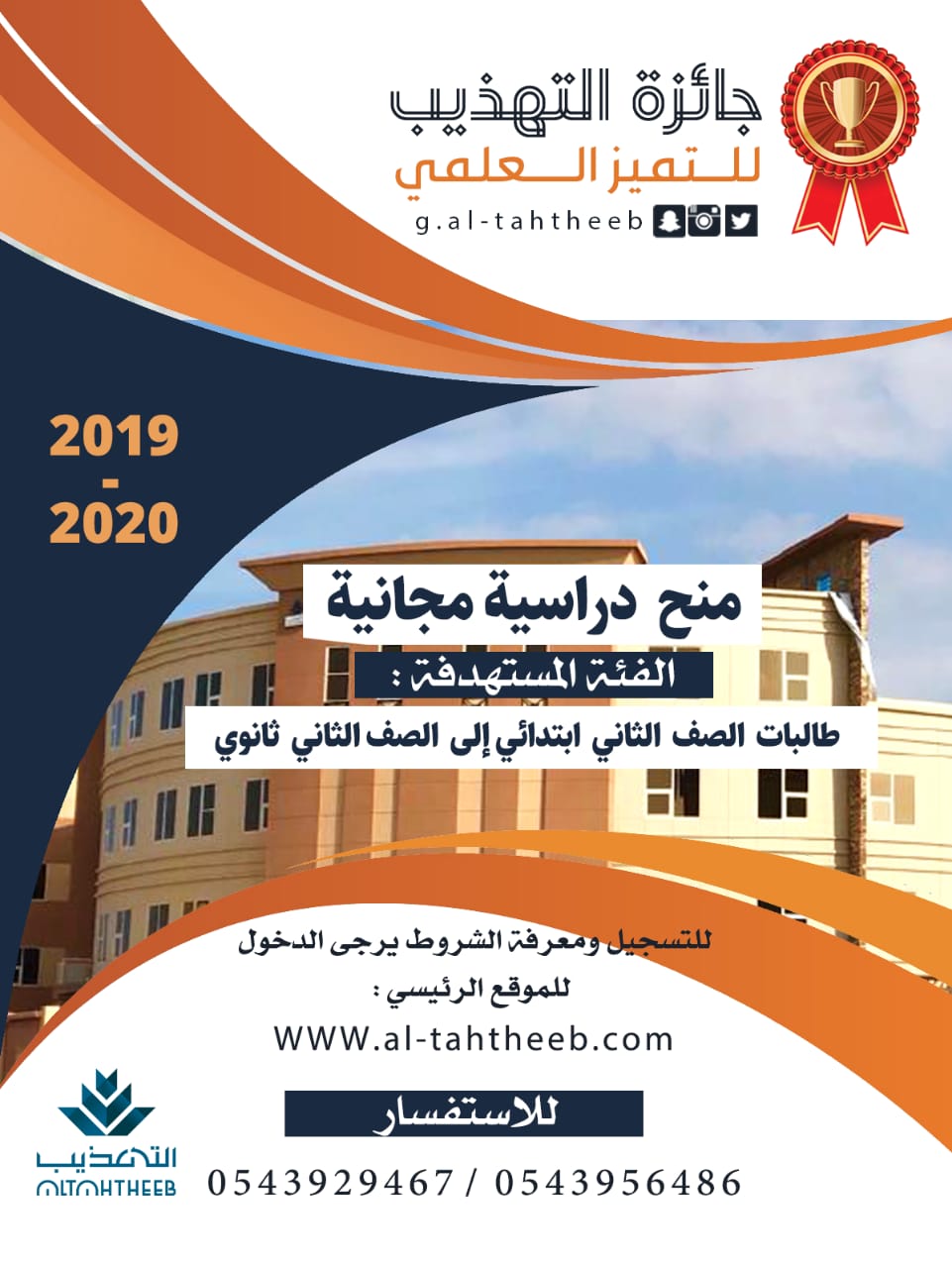 الآن فرصتك للحصول على جائزة التهذيب للتميز العلمي «سنة دراسية مجانية في مجمع التهذيب التعليمي للبنات»