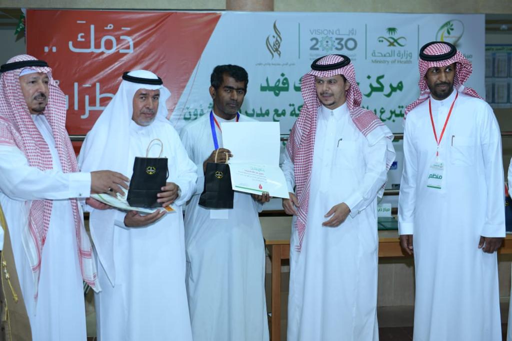 دشن مركز حي الملك فهد التابع لجمعية البر بالأحساء بالشراكة مع صحة الأحساء حملة التبرع بالدم تحت شعار ”دمك قطرات ندى“، في مقر نادي الحي الفهد بمدرسة وادي طوى الإبتدائية بحي الملك فهد بمدينة الهفوف، اليوم الخميس.