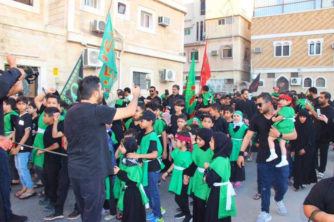 وانطلقت المسيرة التي غصت بالمعزين من مختلف الأعمار في عامها 12 من أمام حسينية ومصلى الإمام المهدي في البلدة لغرس القيم العاشورائية في نفوس الصغار.