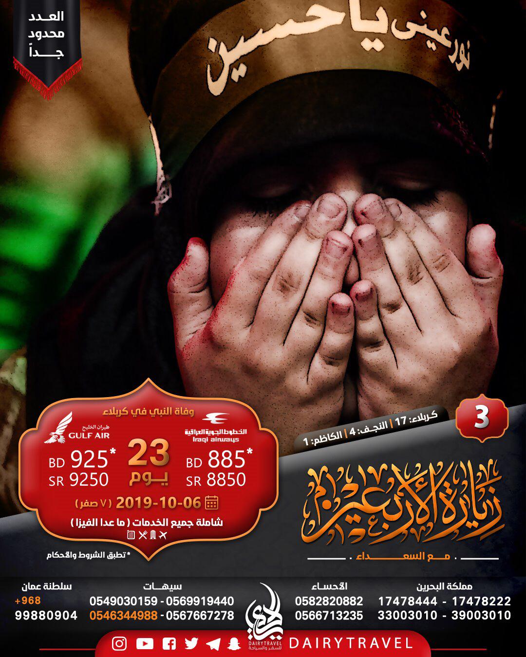 قبل نفاد المقاعد 🏴 كن معنا في رحلات الاربعين المميزة | باقات منوعة من اجلكم |