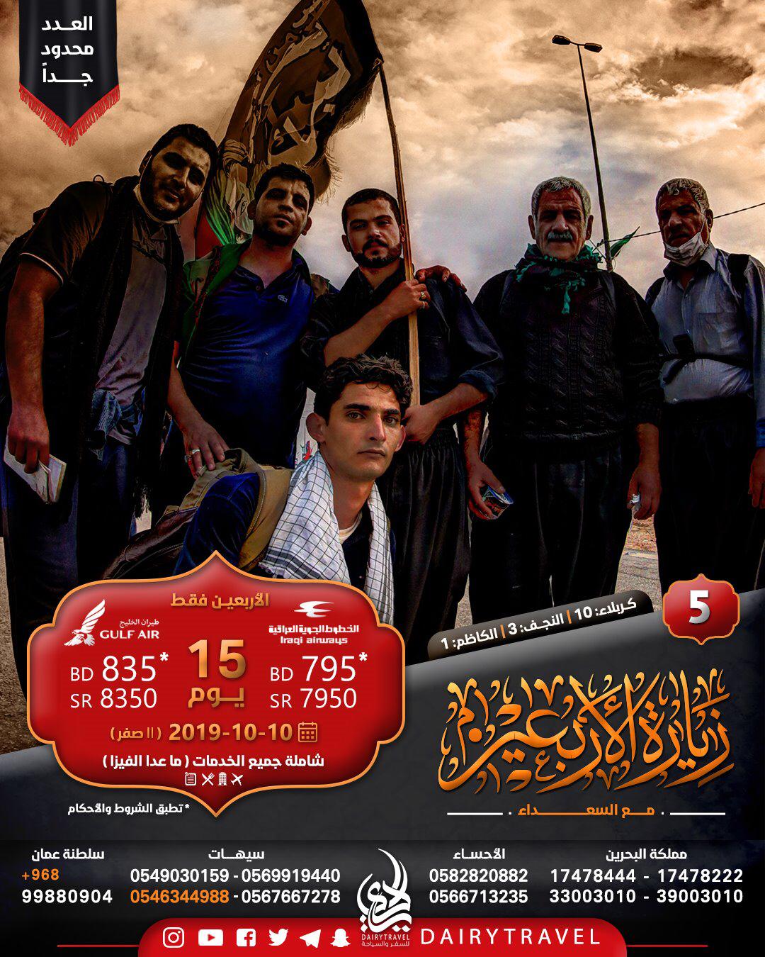 قبل نفاد المقاعد... كن مع ”الديري“ في رحلات الاربعين المميزة