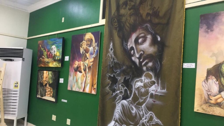 استلهم مجموعة من التشكيليين موضوعات رسومهم في المعرض الخاص بمؤسسة الإمام الحسين
