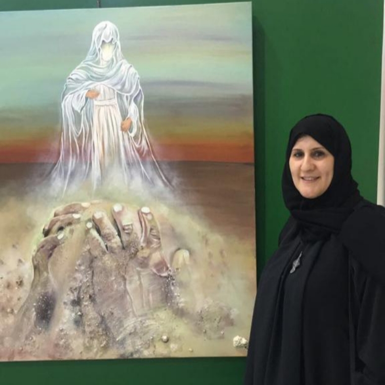 وشاركت الفنانة بلقيس الأمير بلوحة زيتية من الكانفس بمقاس 100*120، وهي مستوحاة من دعاء الندبة في إشارة إلى ”حال الأمة وما آلت اليه من أوضاع مؤسفة“، مشيرة إلى أن عملها العام الماضي كان بعنوان ”منقذ البشرية“.