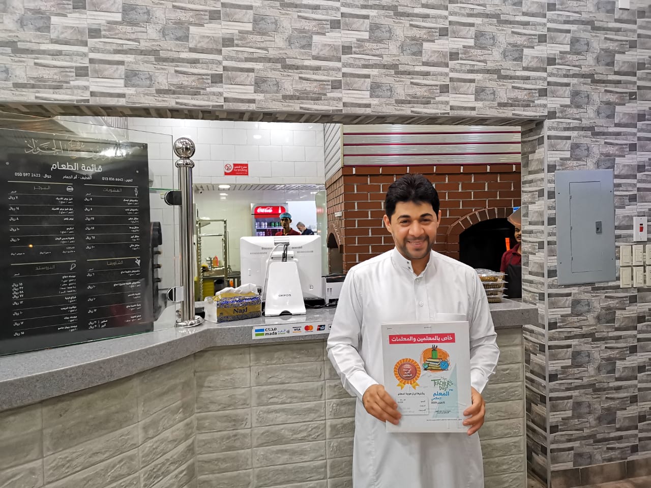 وأضاف أن المبادرة تشمل جميع معلمي ومعلمات الوطن، حيث تم وضع ملصق خاص على واجهة المحلات المشاركة في هذه الحملة ليسهل على المعلم الإستفادة من هذه الخصومات التي تستمر لمدة أسبوع من تاريخ اليوم العالمي للمعلم.