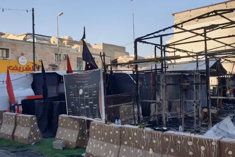 التهمت النيران صباح اليوم «مخيما عاشورائيا» في بلدة الجش بمحافظة القطيف حيث باشرت فرق الدفاع المدني الموقع فور إبلاغها بنشوب الحريق.