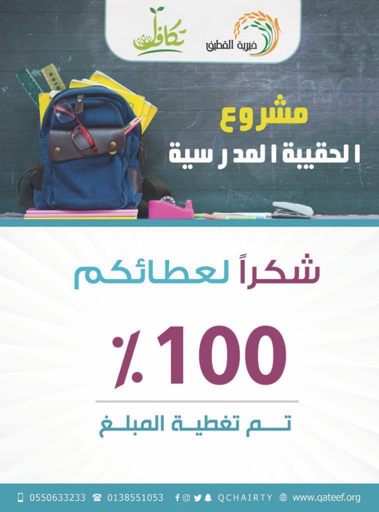 نجحت جمعية القطيف الخيرية في إكمال مشروع الحقيبة المدرسية الذي نظمته تحت عنوان «يدًا بيد لبناء جيلٍ واعد».