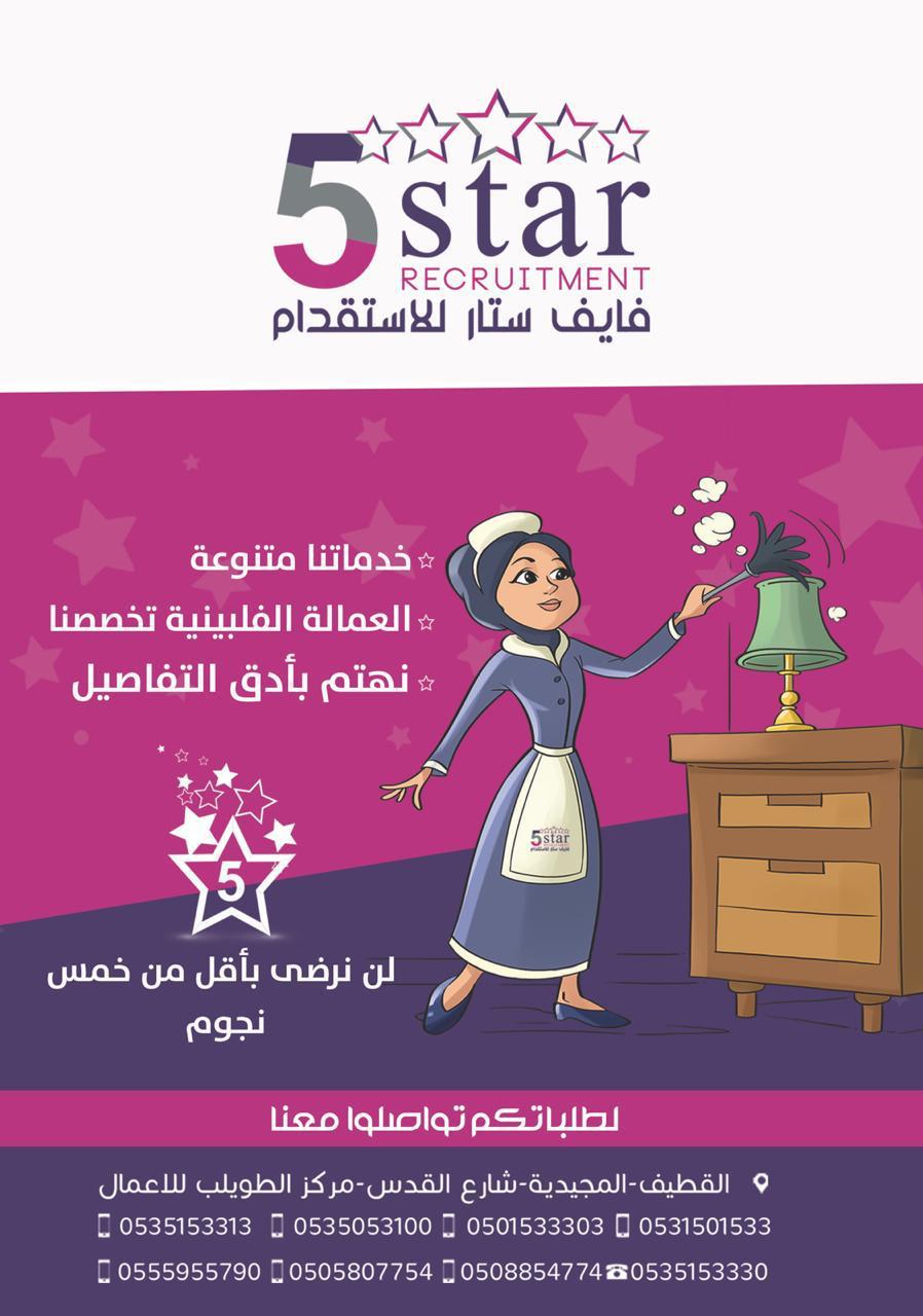 تابعوا مكتب فايف ستار للاستقدام على الإنستقرام والواتساب