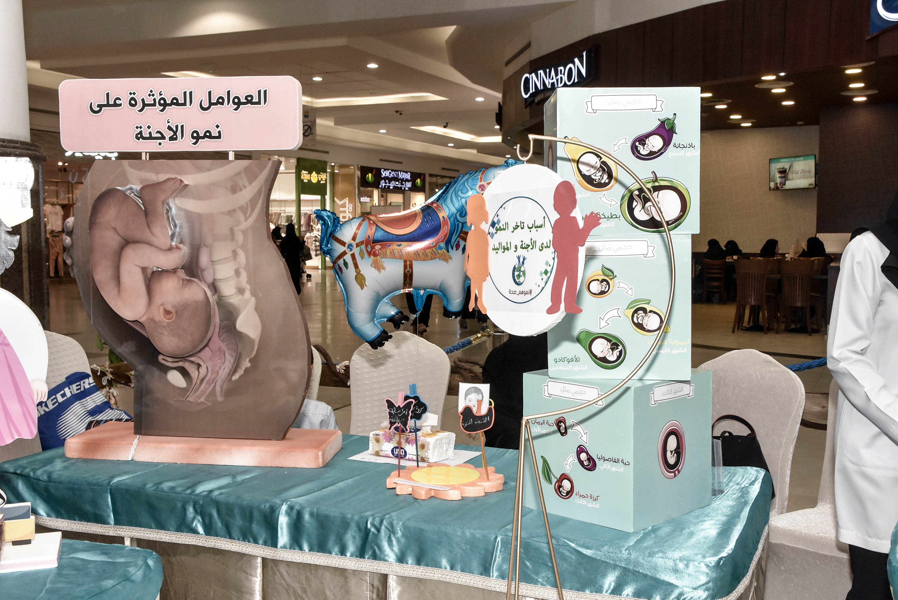 وتضمنت فعاليات الحملة 15 ركنا تثقيفيا منها: ركن صحة الأم والعوامل المؤثرة على نمو الجنين، وأسباب تأخر النمو، والأسباب الهرمونية لقصر قامة الأطفال، ودواعي استخدام هرمون النمو، ركن الصحة النفسية، وركن الصيدلية وصحة الأسنان والفم، وركن الأشعة والمختبر، وركن العملقة والسمنة.