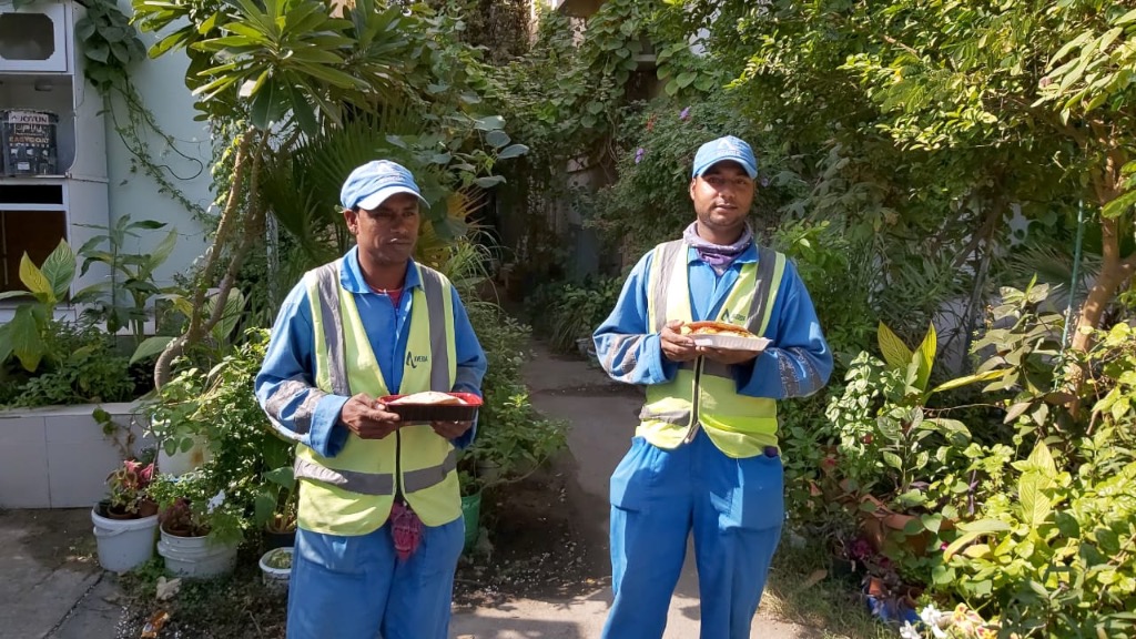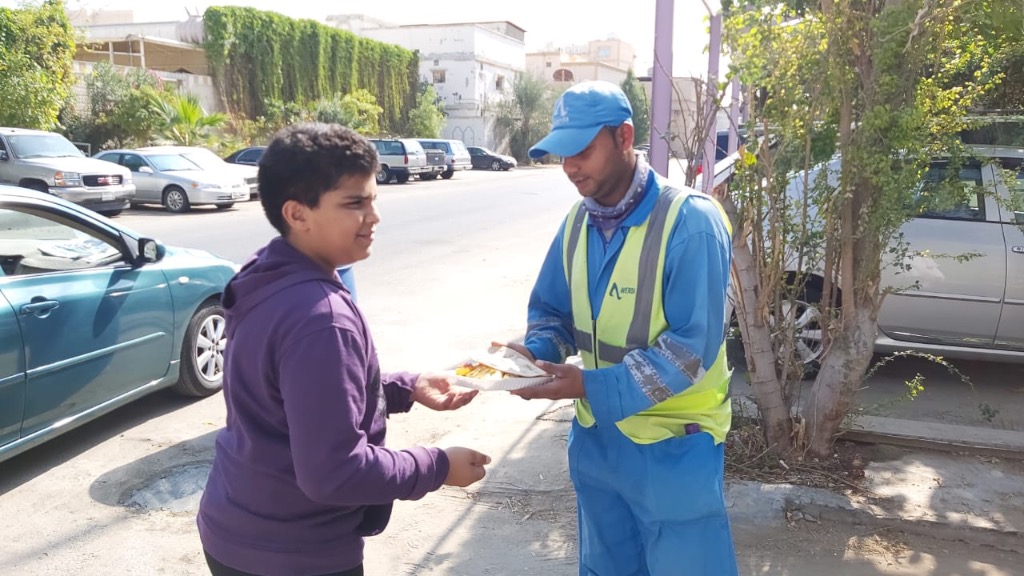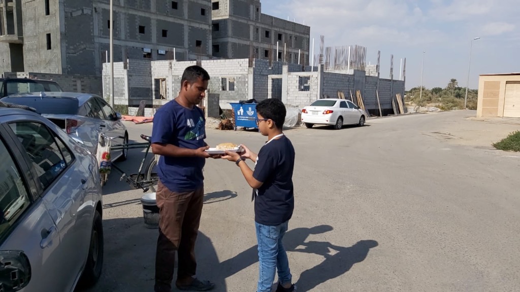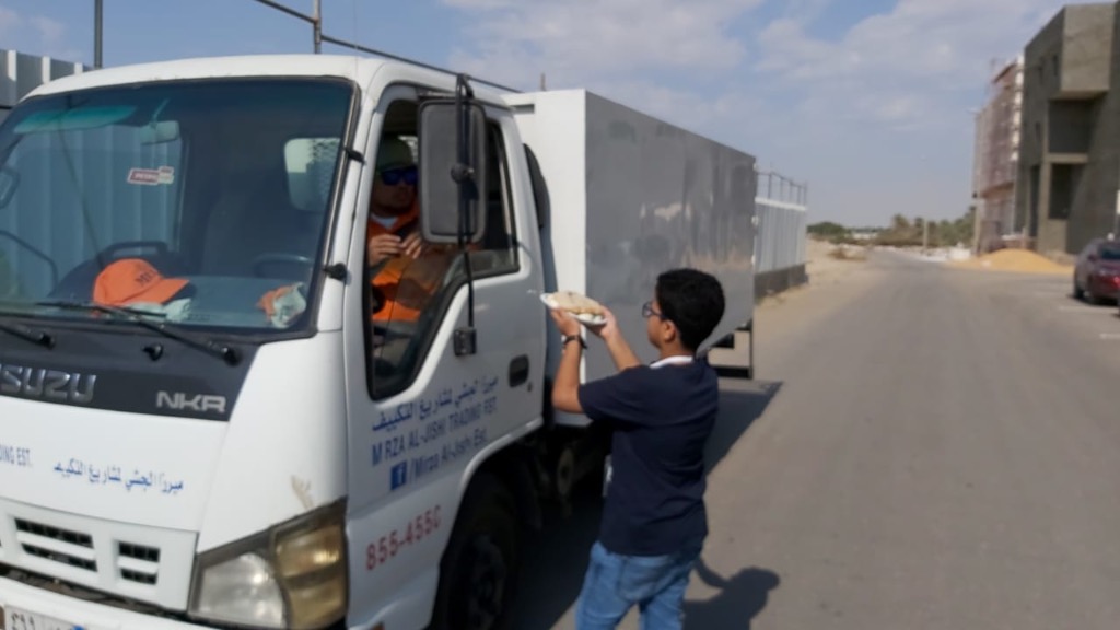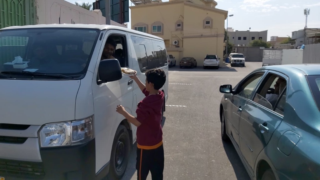 وأشار إلى أنه تم اختيار 5 من الطلاب وجالوا عددا من الأحياء القريبة من المدرسة وتم توزيع عدد 60 وجبة إفطار أعدتها عددا من الأسر والكادر التعليمي في المدرسة. علما أن التوزيع شمل عدد من المقيمين من عمال النظافة خاصة ومن العمالة المتواجدة في الشوارع. ولم يستغرق هذا التوزيع أكثر من 60 دقيقة من الزمان ليكون الوضع 60 × 60 ”الوقت والوجبات“.