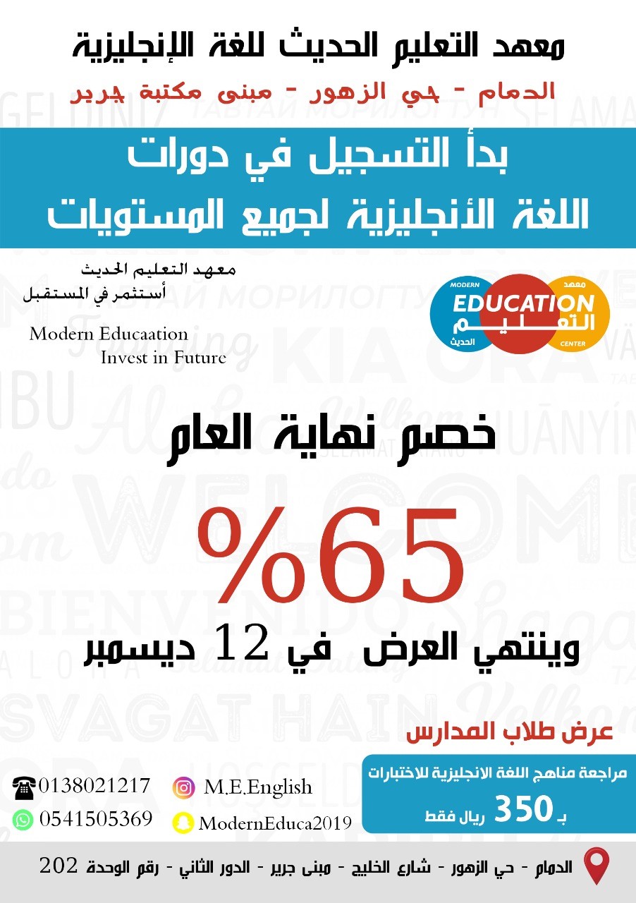 يقدم معهد التعليم الحديث للغات بالدمام عروض نهاية العام 2019: