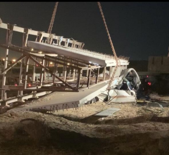 توفي وافدان من الجنسية الآسيوية في حادث مروري على طريق الدمام الجبيل السريع إثر اصطدام شاحنة بسيارتهم وسقوط قطع خرسانية عليهم.