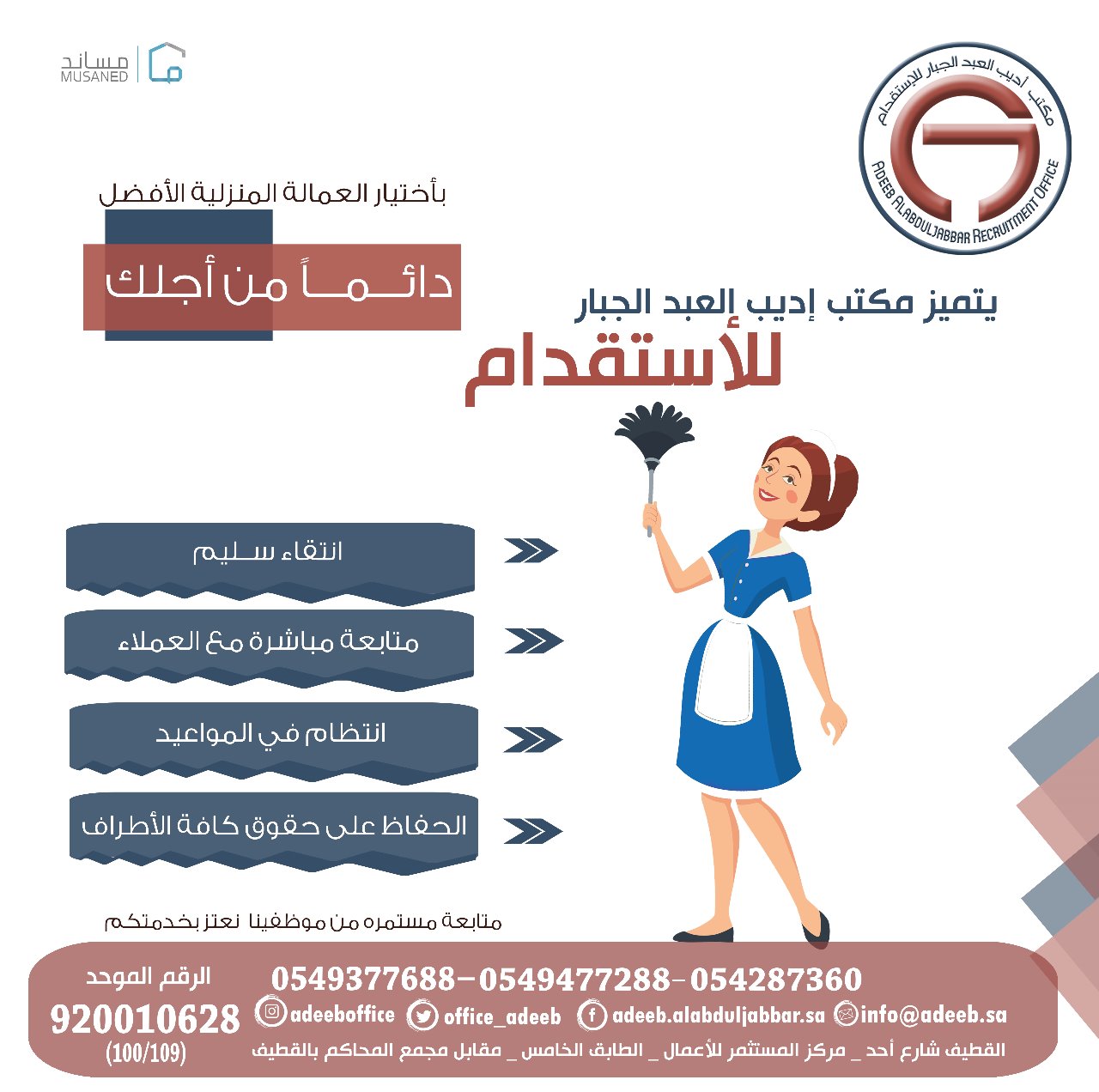 تميّز بسرعة الإنجاز مع مكتب «أديب العبد الجبار» لاستقدام العمالة المنزلية