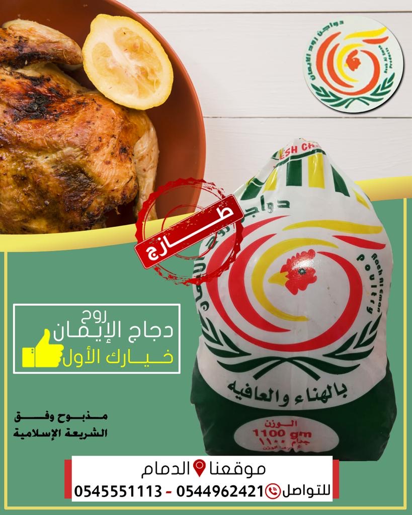 توفر ملحمة روح الإيمان الدواجن واللحوم بأنواعها، مذبوحة وفق الشريعة الإسلامية.