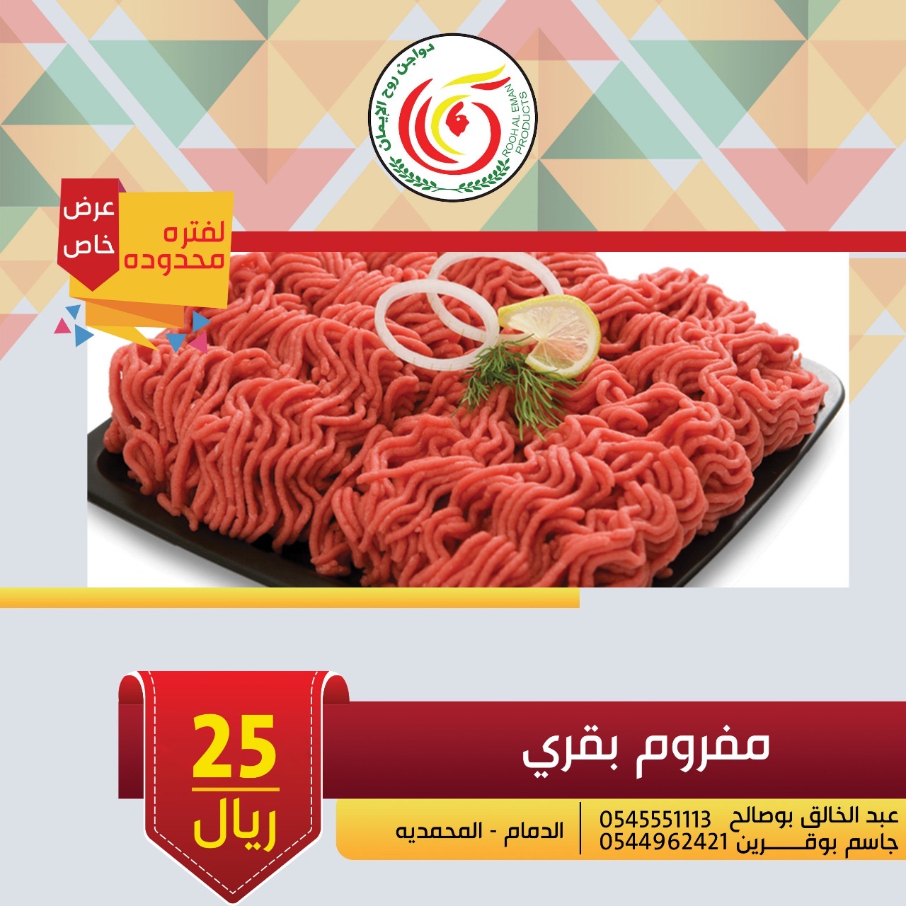 لحم بقري مفروم بـ 25 ريال فقط