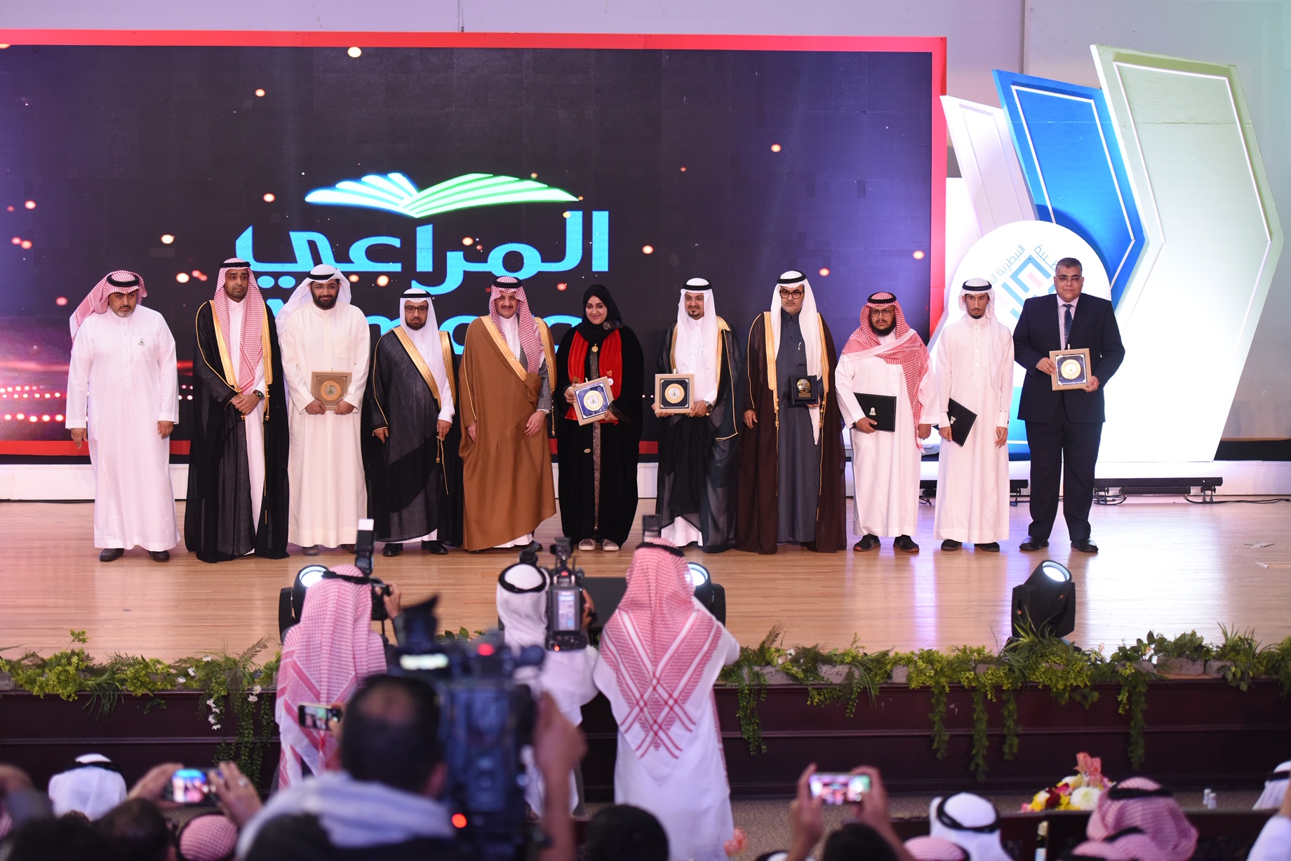 فيما كرم سموه الكريم الفائزين بجائزة المراعي للطبيب البيطري وهم: الطالب المتفوق جهاد جميل الضبيعي من كلية الزراعة والطب البيطري من جامعة القصيم والطالب المتفوق عبد الله حسن السويلم من كلية الطب البيطري بجامعة الملك فيصل.