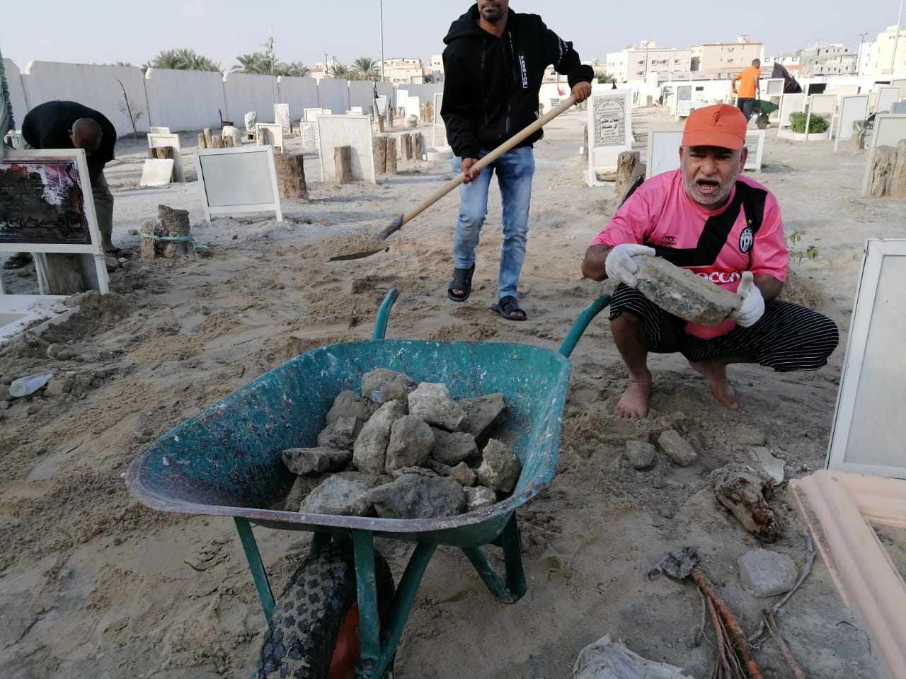 بالصور.. عشرات المتطوعين يرممون القبور في ”خباقة القطيف“