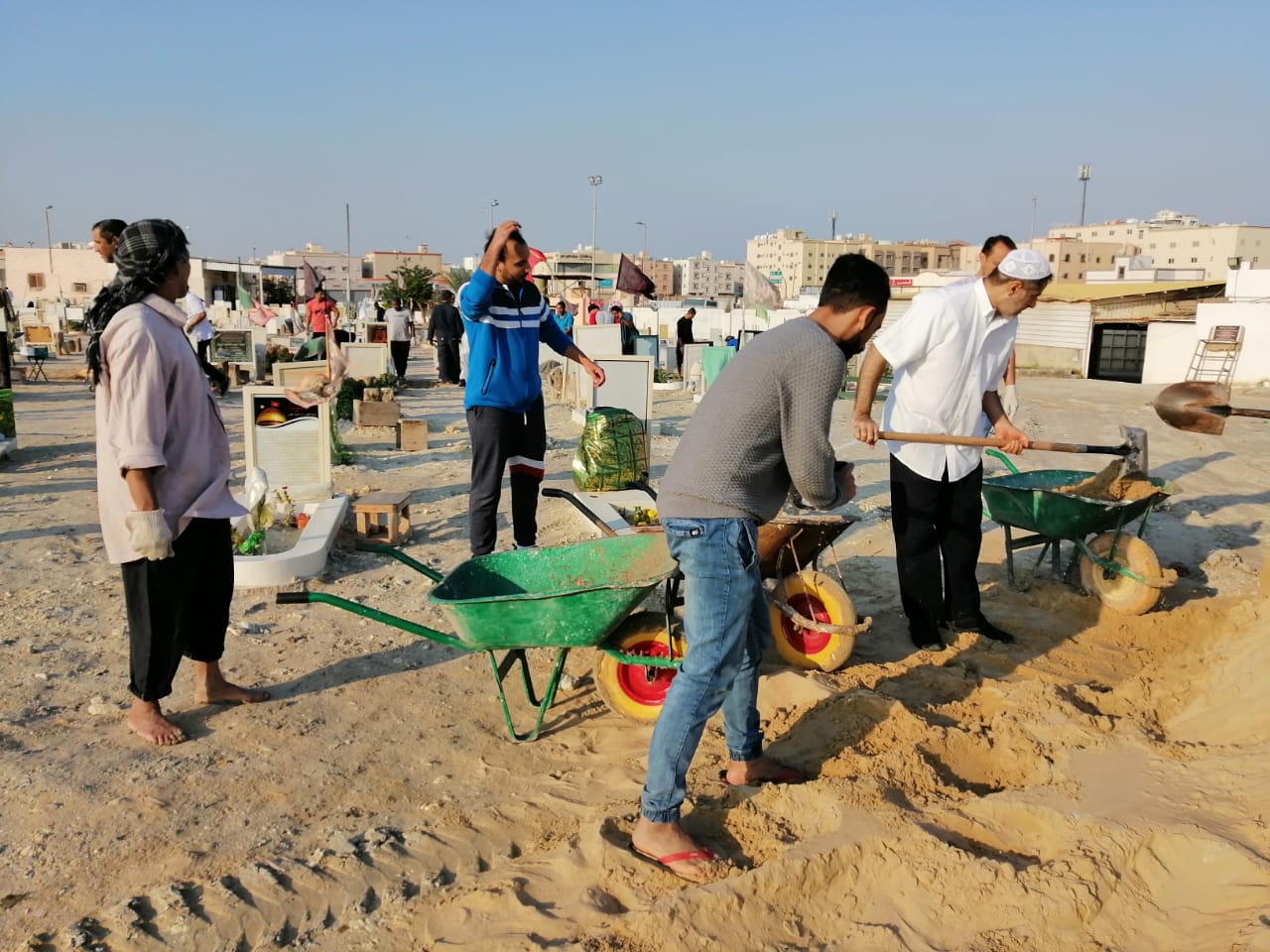 واجتمع العشرات في جميع مناطق القطيف بترميم عدة مقابر اليوم الجمعة، في القديح والقطيف والخويلدية والبحاري.