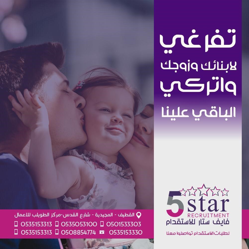 تفرغي لأبنائك وزوجك.. واتركي الباقي على فايف ستار
