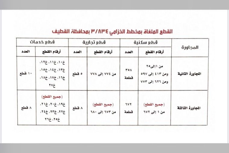 كشفت بلدية محافظة القطيف عن بيان بقطع الأراضي الملغاة في مخطط الخزامى الواقع غرب المحافظة واعدة بإستكمال الجهود لتعويض أصحاب تلك الأراضي.