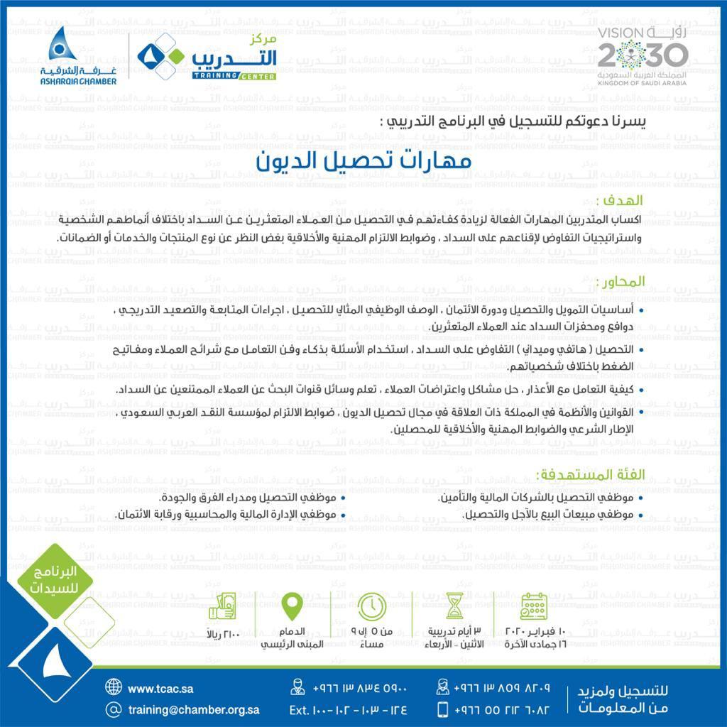 برامج تطويرية متنوعة من مركز التدريب بغرفة الشرقية والبداية بالقطيف