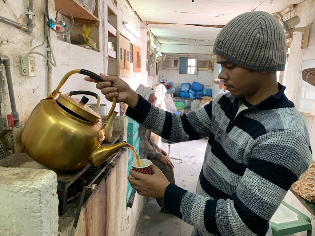 ويدير المقهى الحاج حسن الغراب ”أبو علي“ الذي يستقبل زوار المقهى من كبار السن في الساعات الأولى من صباح كل يوم، لتبادل أطراف الحديث وتناول وجبة إفطارهم.