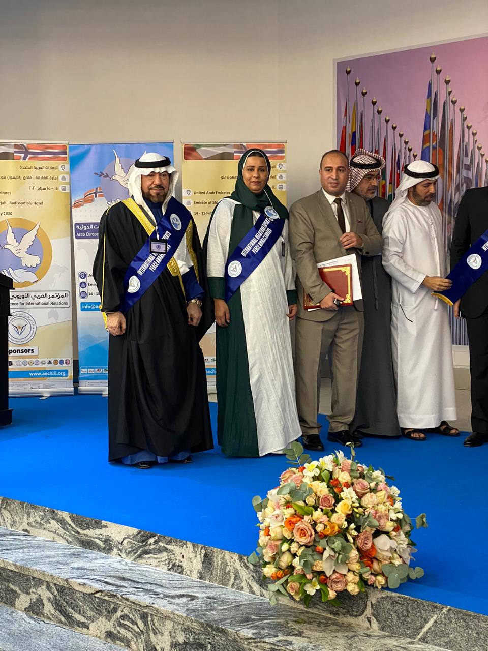 وقدم جائزة شخصية العام للدكتور عبد الله السيهاتي الأمين العام للمركز العربي الأوروبي لحقوق الإنسان والقانون الدولي أيهان جاف، ورئيس الهيئة الاستشارية العليا للمركز الدكتور محمود حسن.