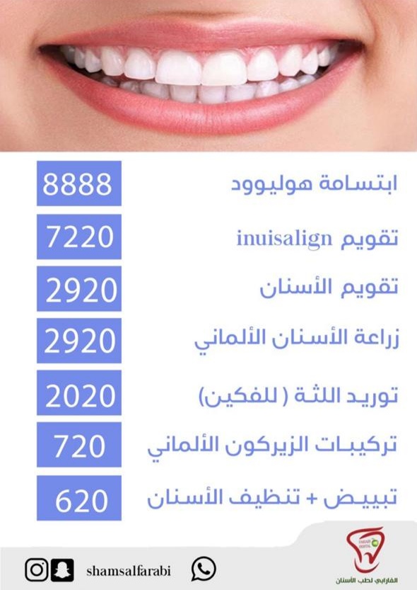 - 3 خدمات بسعر 1999 ريال فقط «تلبسة زيركون، علاج العصب مع حشوة، قص اللثة، توديد لثه، تبيض الأسنان».