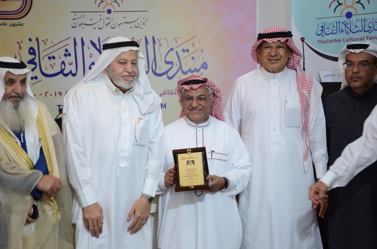 وقدم الدروع التقديرية للفوتوغرافي محمد الخراري ومديرة مركز خطوة واعدة للإرشاد الأسري الأهلي افتخار الدهنيم وللكاتب عيسى العيد الذي وقع كتابه ”إرادة التقدم“ في نهاية الأمسية.