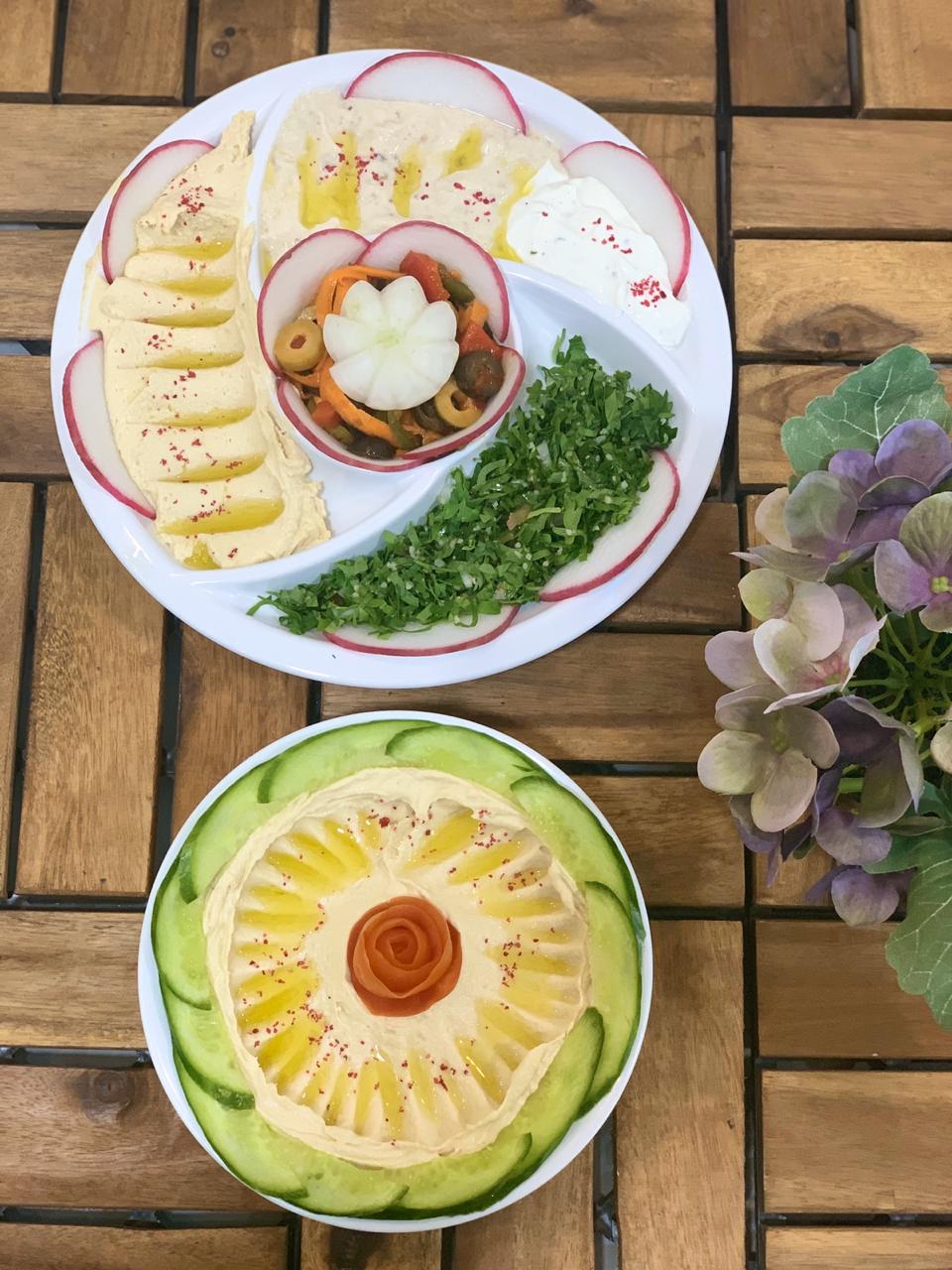 جميع أنواع الرز لحم /دجاج، ومختلف أصناف المقبلات «حمص، متبل، فتوش، سلطة خضراء، تبولة وغيرها»، بالإضافة إلى الإيدامات مرق الخضار والبامية، وكذلك الشوربة والملوخية وأنواع المعجنات.