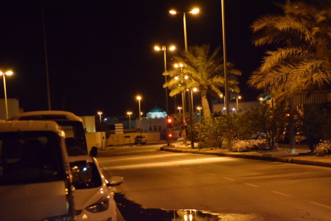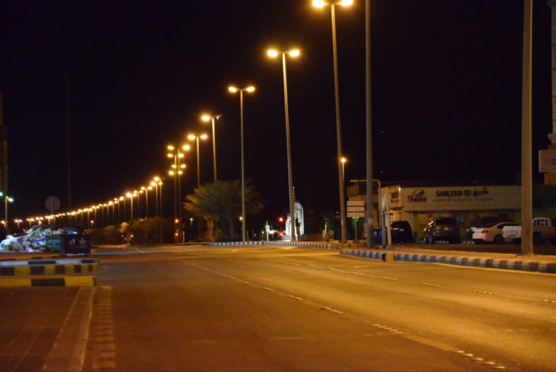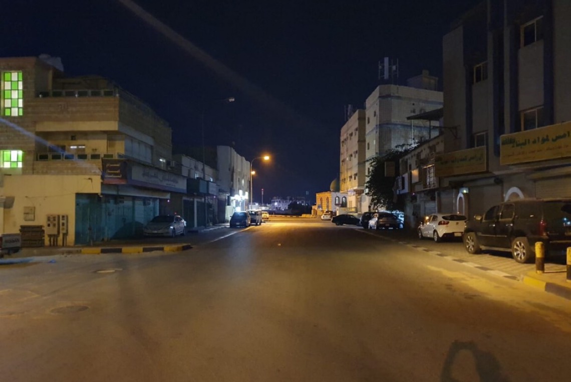 تحولت شوارع القطيف عند الساعة السابعة الى سكون تام، حيث اختفت أصوات المركبات التي كانت تثير الضجيج طيلة ساعات النهار.