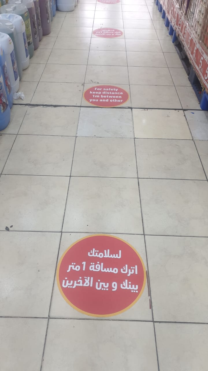 مع تعقيم عربات التسوق وتوفير قفازات للمتسوقين وكيفية التعامل مع الأعراض المرضية عند ظهورها على أحد العاملين واتخاذ أشكال الوقاية وفحص العاملين حراريا مرتين يوميا.
