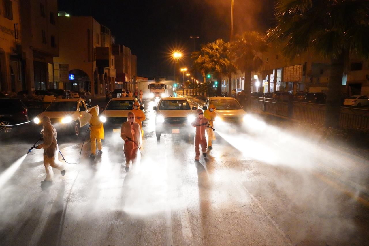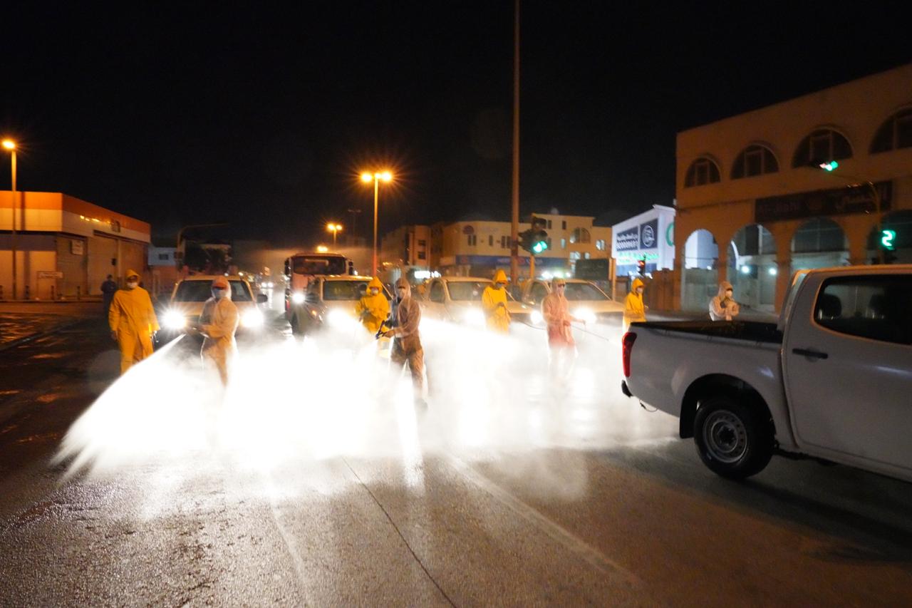 وشملت أعمال التعقيم الشوارع الرئيسية في القطيف كشارع القدس ومدينة سيهات ومدينة صفوى.