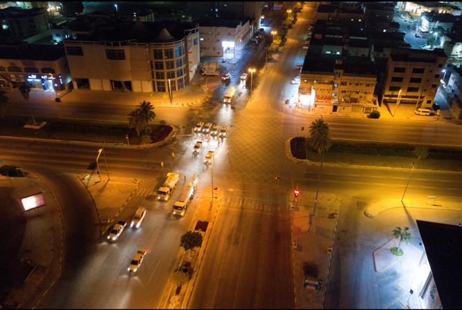 وأظهرت مقاطع فيديو وثقها مصور جهينة الإخبارية عمال البلدية يقومون بتعقيم وتطهير الشوارع والأرصفة.