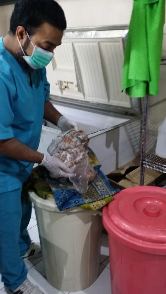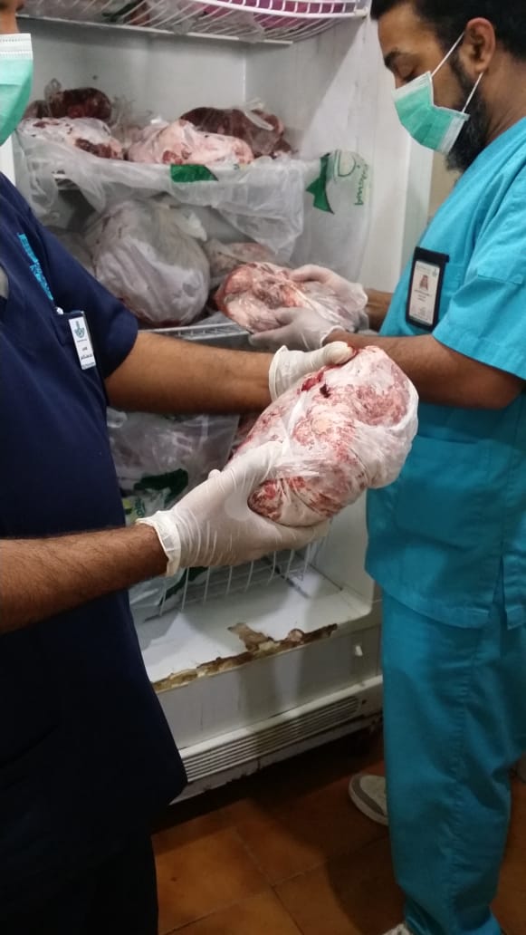 وأوضح رئيس بلدية محافظة القطيف المهندس محمد الحسيني، أن فرق الرقابة تمكنت من ضبط لحوم فاسدة في محل مخالف يقوم بتكديس اللحوم في جهاز التبريد لمدة طويلة.
