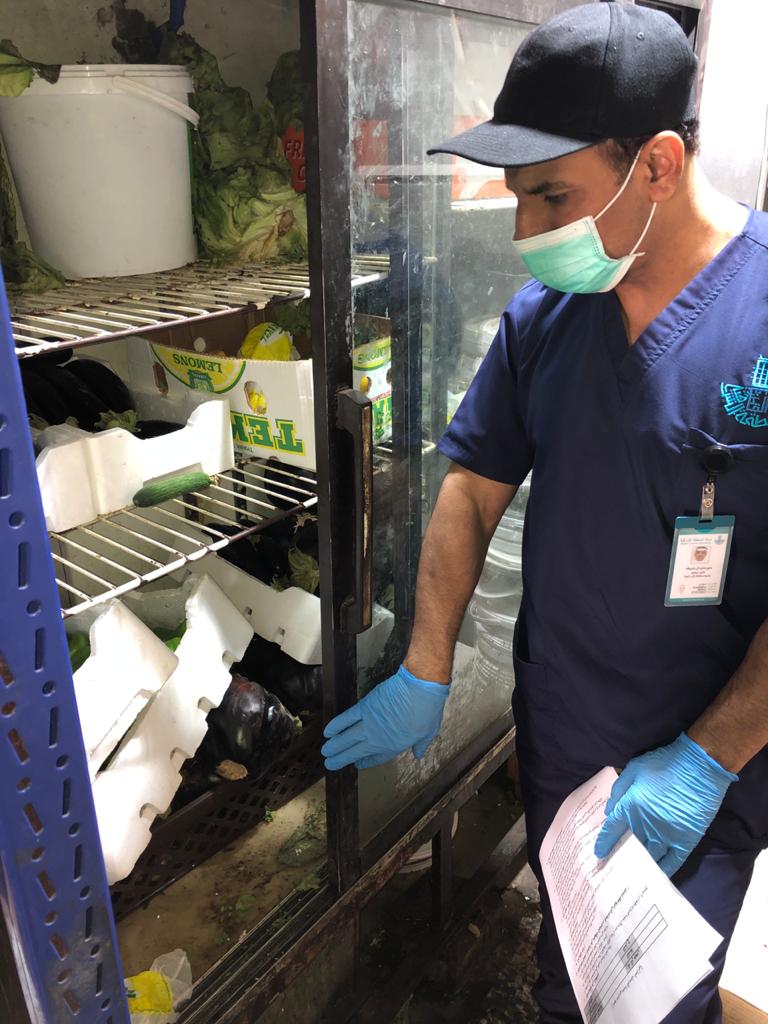 وأشار الى مصادرة 30 كيلو جرام مواد غذائية فاسدة، و58 كيلوجرام من الخضار تظهر عليها علامات التلف والفساد.
