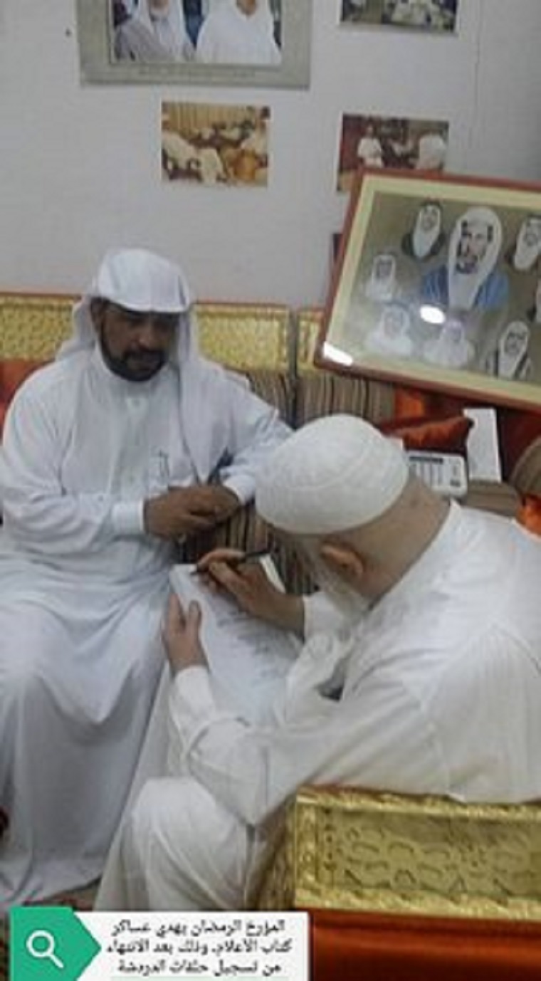وبعد الدردشة أهدى عساكر المؤرخ الرمضان نسخة من كتابه «النقد عند العلامة الفضلي» كما تفضل المؤرخ بإهدائه نسخة بالكمبيوتر من الجزء الأول من كتاب «منتظم الدرين في تراجم أعلام الأحساء والقطيف والبحرين» لمؤلفه محمد بن علي بن أحمد التاجر البحراني، بتهميش وتعليق المؤرخ جواد الرمضان رحمه الله تعالى.