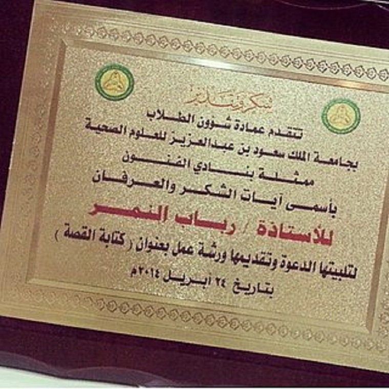 •  وحازت على جائزة في فن الإلقاء الشعري في جامعة الملك سعود بالرياض.