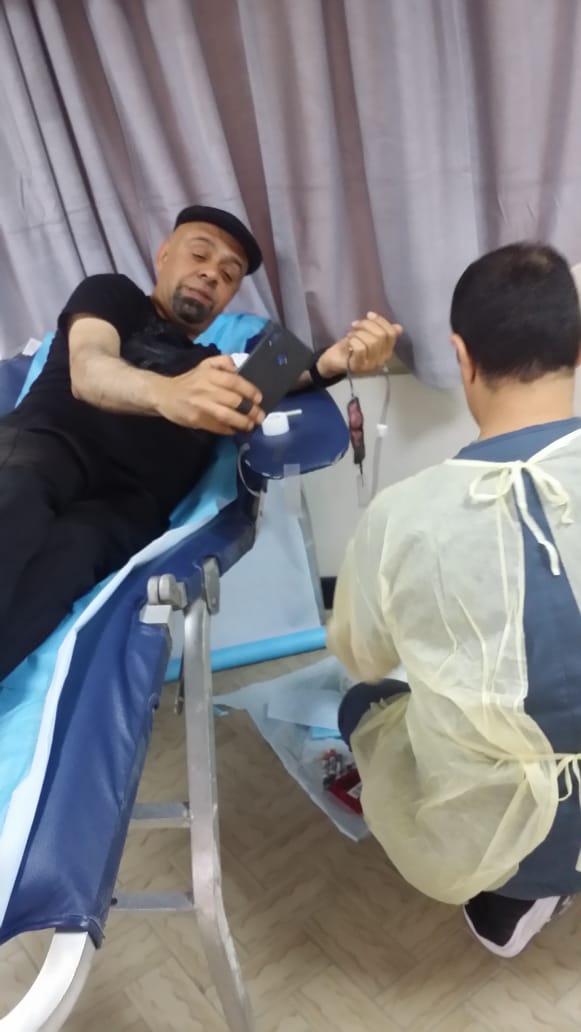 وكان تواجدنا يوم الثلاثاء الموافق 2020,4021 ميلادي الساعة الثامنة صباحا.. وفي البداية تم تسجيل الأسماء وتعبئة الأوراق والاستمارة الشخصية وأخذ الفحوصات الأولية قبل التبرع والتأكد من صحة الجميع.