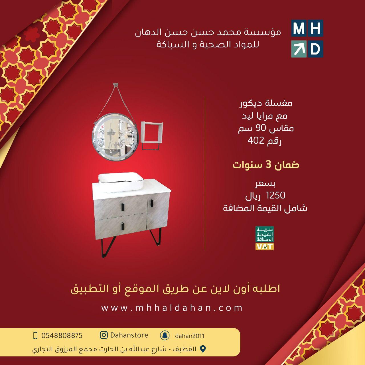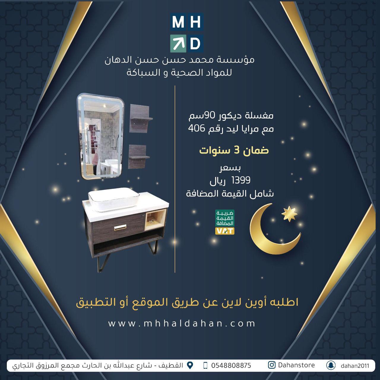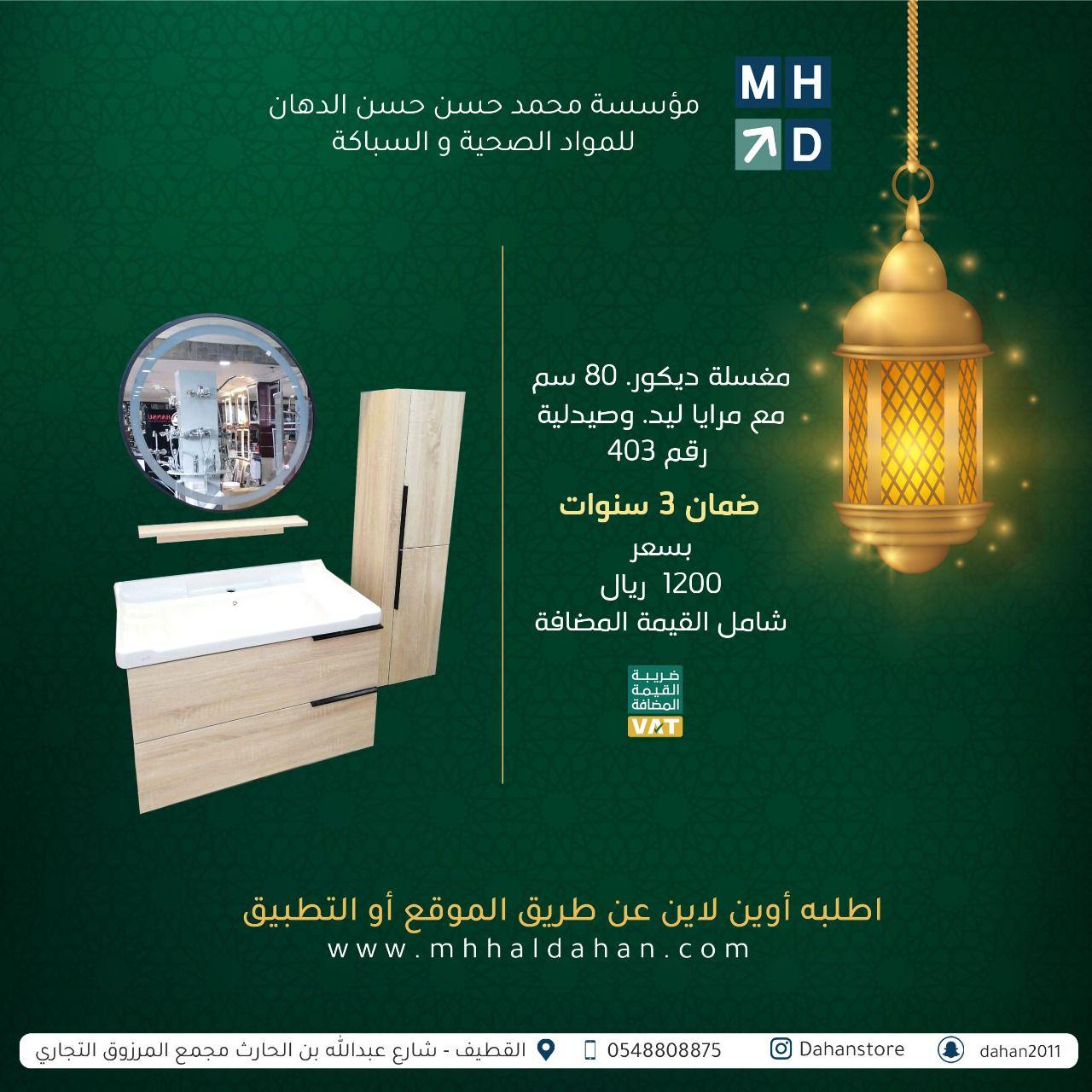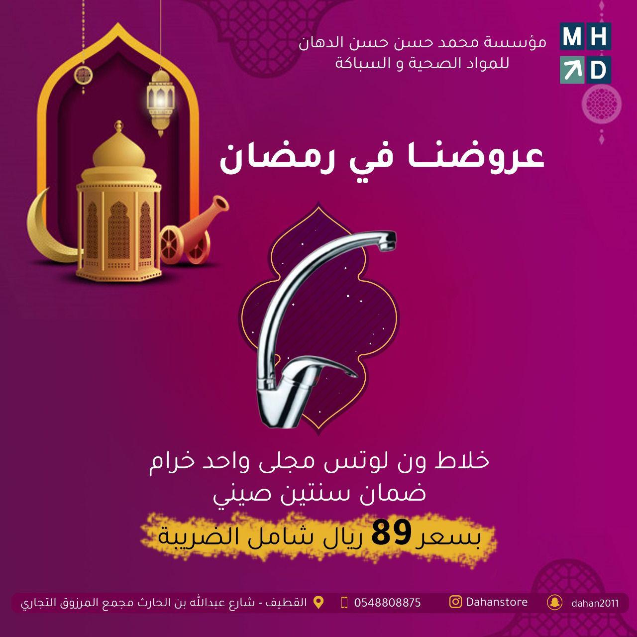 يسر مؤسسة محمد حسن حسن الدهان التجارية ان تهنئكم بشهر رمضان المبارك وان نعلن لعملاءنا الكرام عن استمرار خدماتنا وعروضنا على الأدوات الصحية