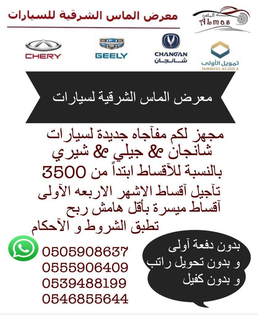 يسر معرض «الماس الشرقية» بالقطيف إن يهنئكم بشهر رمضان المبارك، ويعلن عن عروضه الكبرى في شهر الخير على سيارات جيلي وشانجان وشيري الجديدة 2020