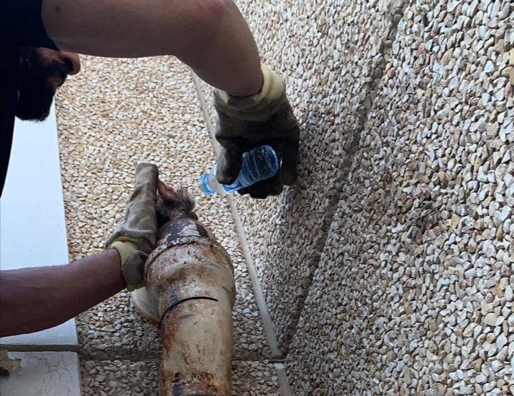 إنقاذ قطة احتجزت داخل أنبوب مياه في القطيف